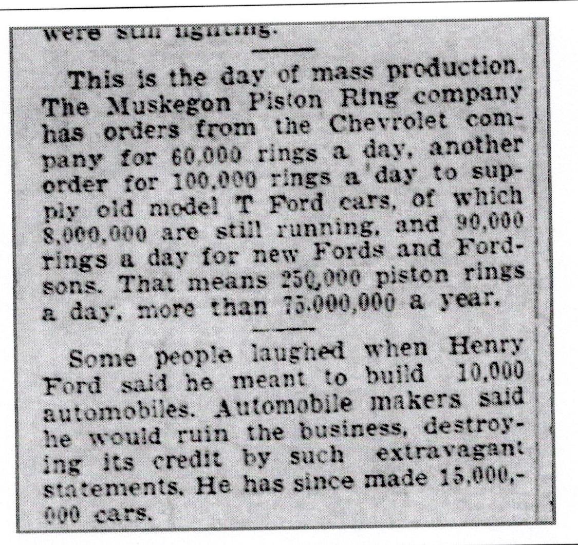 George - Actually, you probably meant that there were approximately a total of 15 million Model T Fords produced "BY" 1927, not "IN" 1927, but I guess we know what you meant.