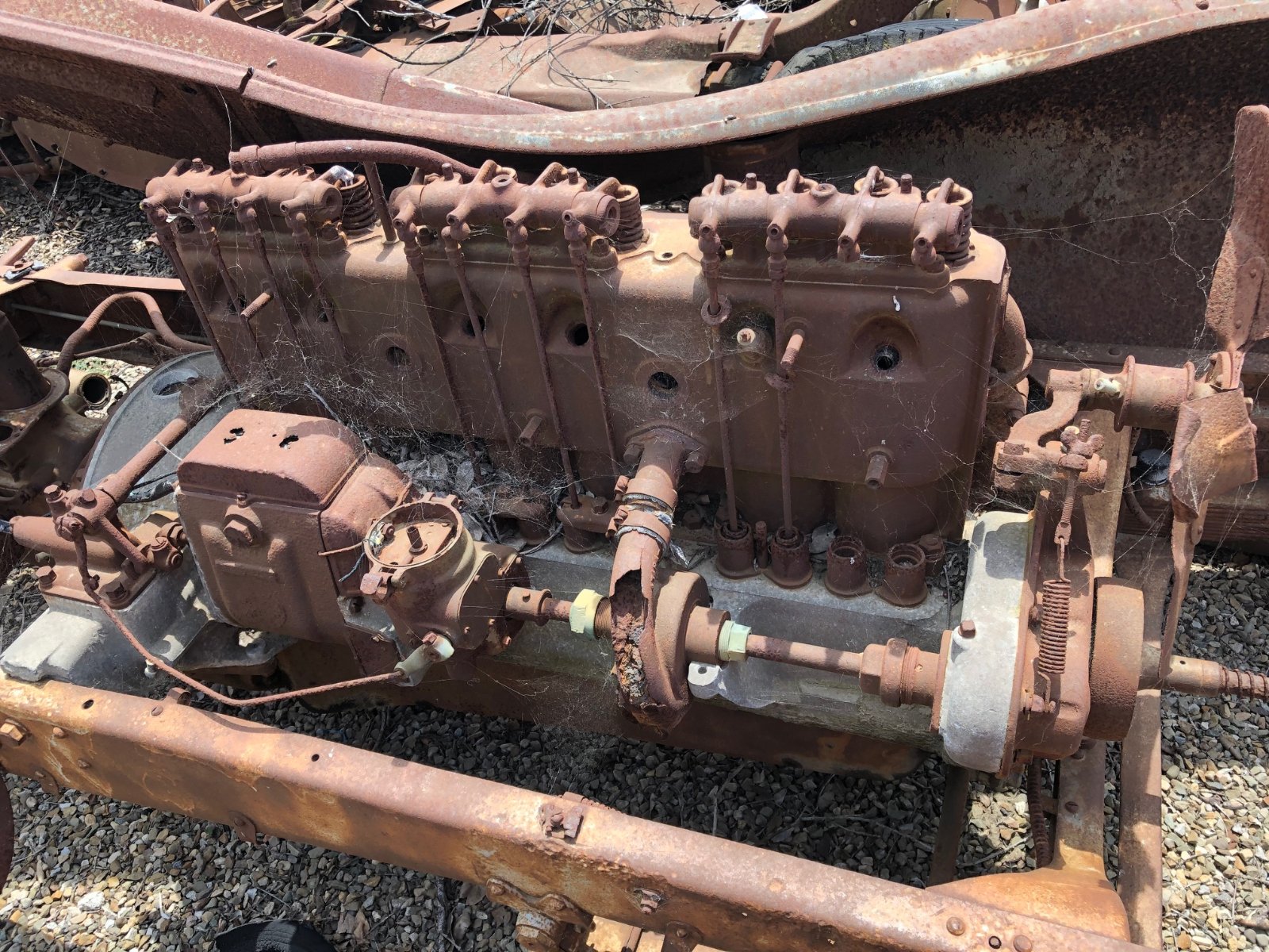 There’s another 6 cylinder Dodge next to this, I don’t know the year. I wouldn’t have thought a car that late would have open valves, but who knows.... there doesn’t seem to be any way there could have been a cover, what with the pushrods running up the outside of the block.