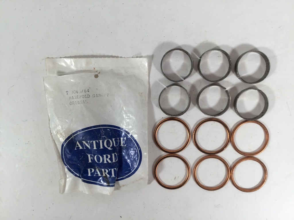 These are the original style Ford parts.The steel ones are the glands, but I call them steel rings for clarity. They are meant to be used "alone together" with the steel rings holding the manifold in place and the copper crush gaskets sealing the gap. I put a little hi-temp RTV on the copper, especially if the mating surfaces have any rust pits. Part numbers are 3063 (copper) and 3064 (steel).