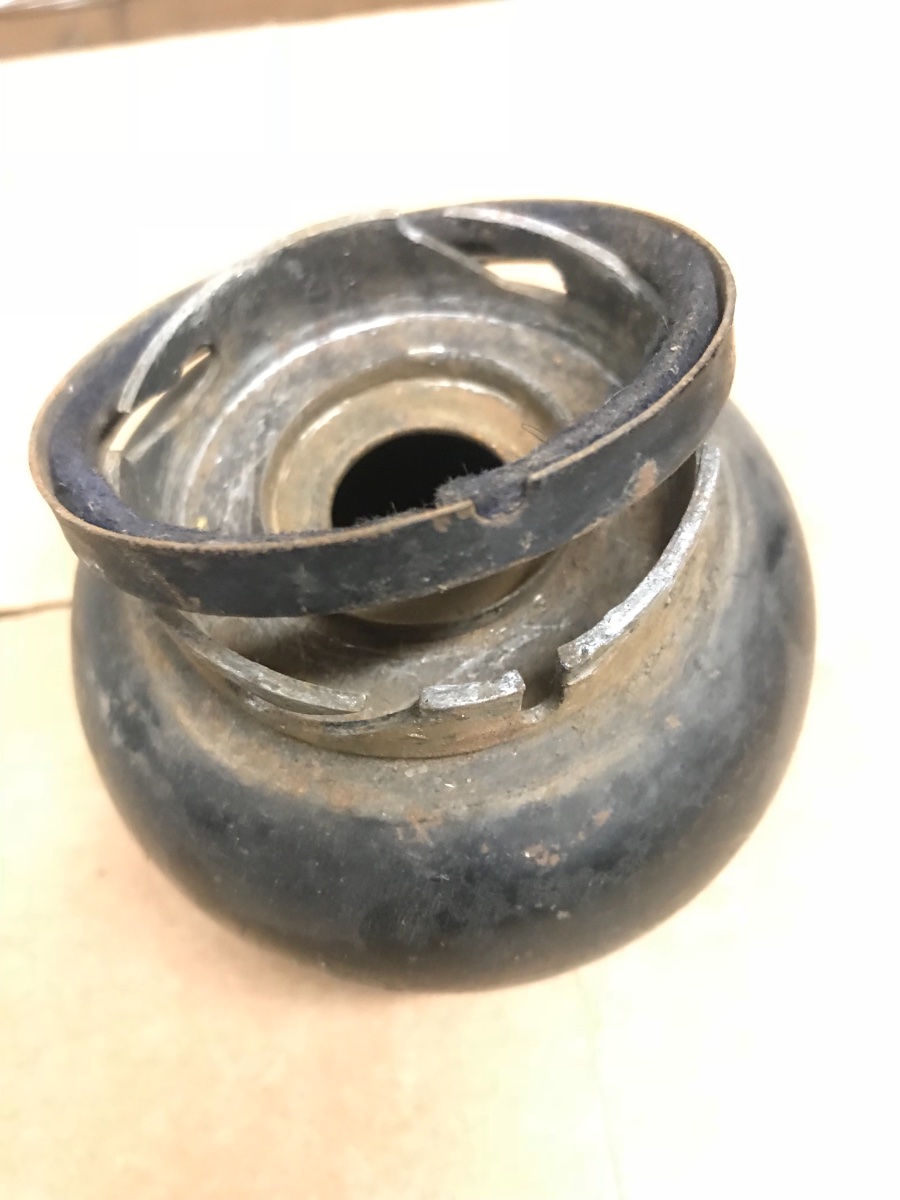 Has anyone else seen a font like this one that has a metal ring with a piece of felt in it? I have had these 1915 side lights for years but I have never seen any besides these that has this ring.