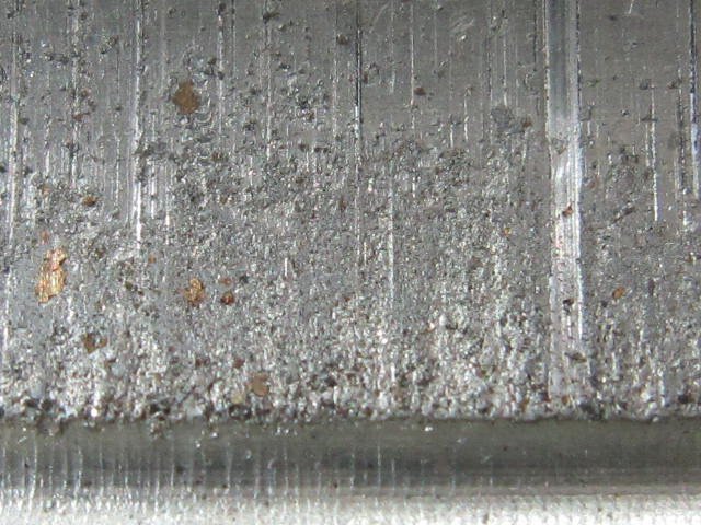 See the amount of debris stuck in babbit, You can identify each piece, bronze, rust, glass beads. This engine had a Dubats crank in it and other than polishing crank would of been fine.