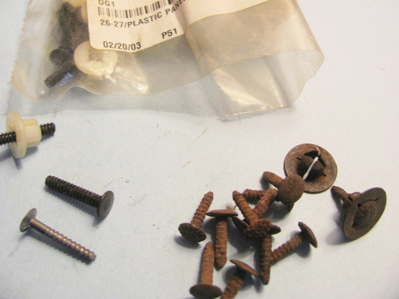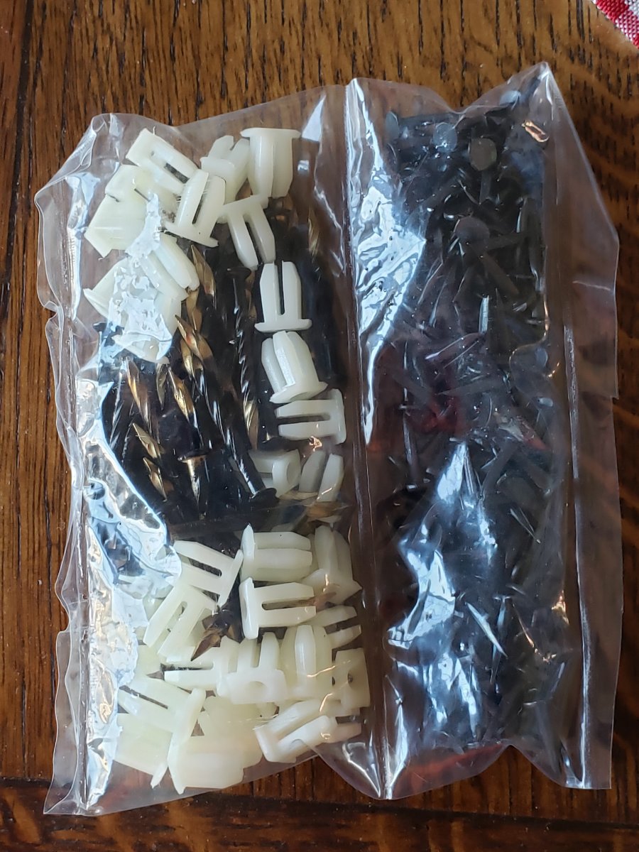 This is the pack of tacks I received from Classtique. They look different than the ones shown. These spiral tacks will work, right? I also read somewhere that the Model A spring clips are a better way to go. Are these the ones that would work? https://www.mikes-afordable.com/product/A46126A.html Pretty pricey but if they work, might be worth it. Looks like the Model A spring clips would work like those on my 68 Cougar. Not sure the diameter of the holes in the doors are small enough to hold.