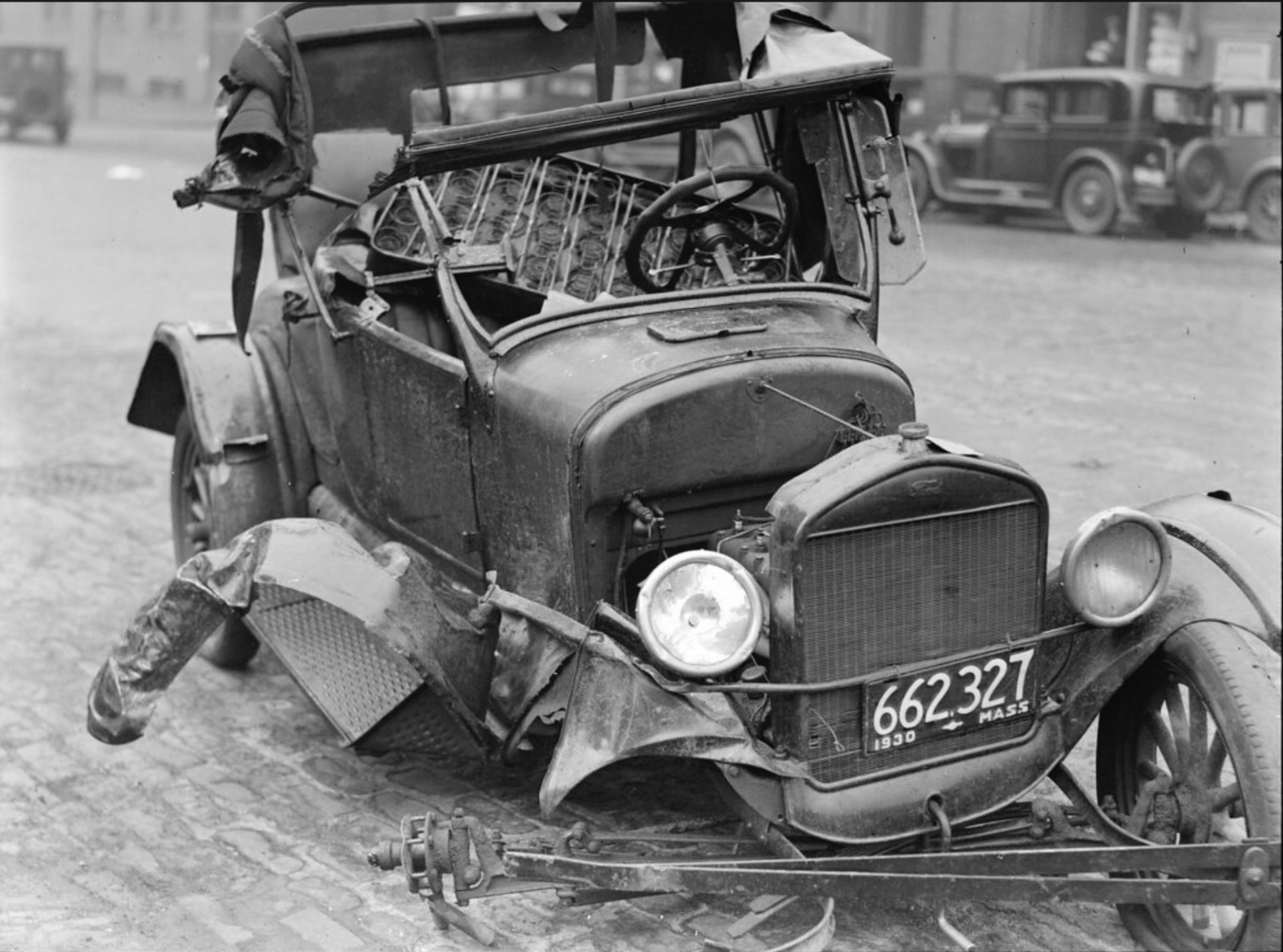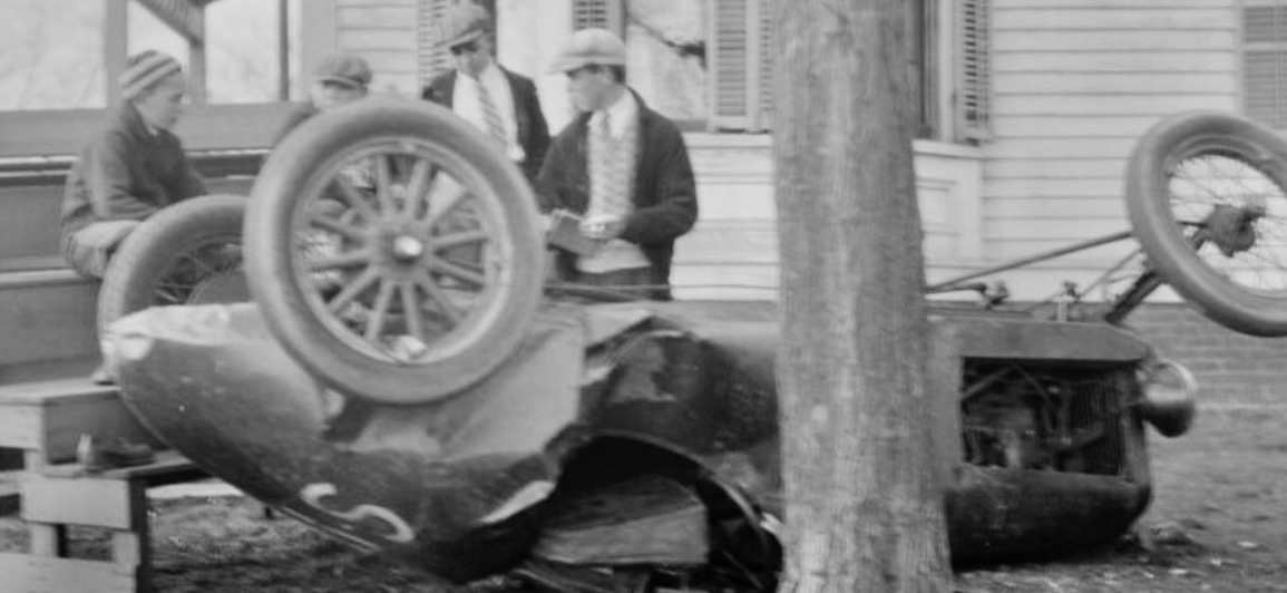 I also can't count the number of times I've seen (even in modern accidents) where wherever the driver was got plowed by a tree, a phone pole, a concrete abutment, etc... Not sure that, if the driver stayed with it, if (or how) he would have survived that one.