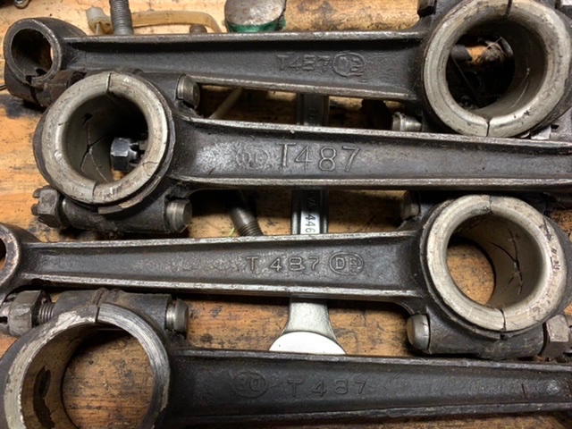 The rods that came out of the 12 when I broke the crank were DB rods we put the light weight rods in I also have the cast pistons and pins that were changed 60 years ago Dad kept every part .