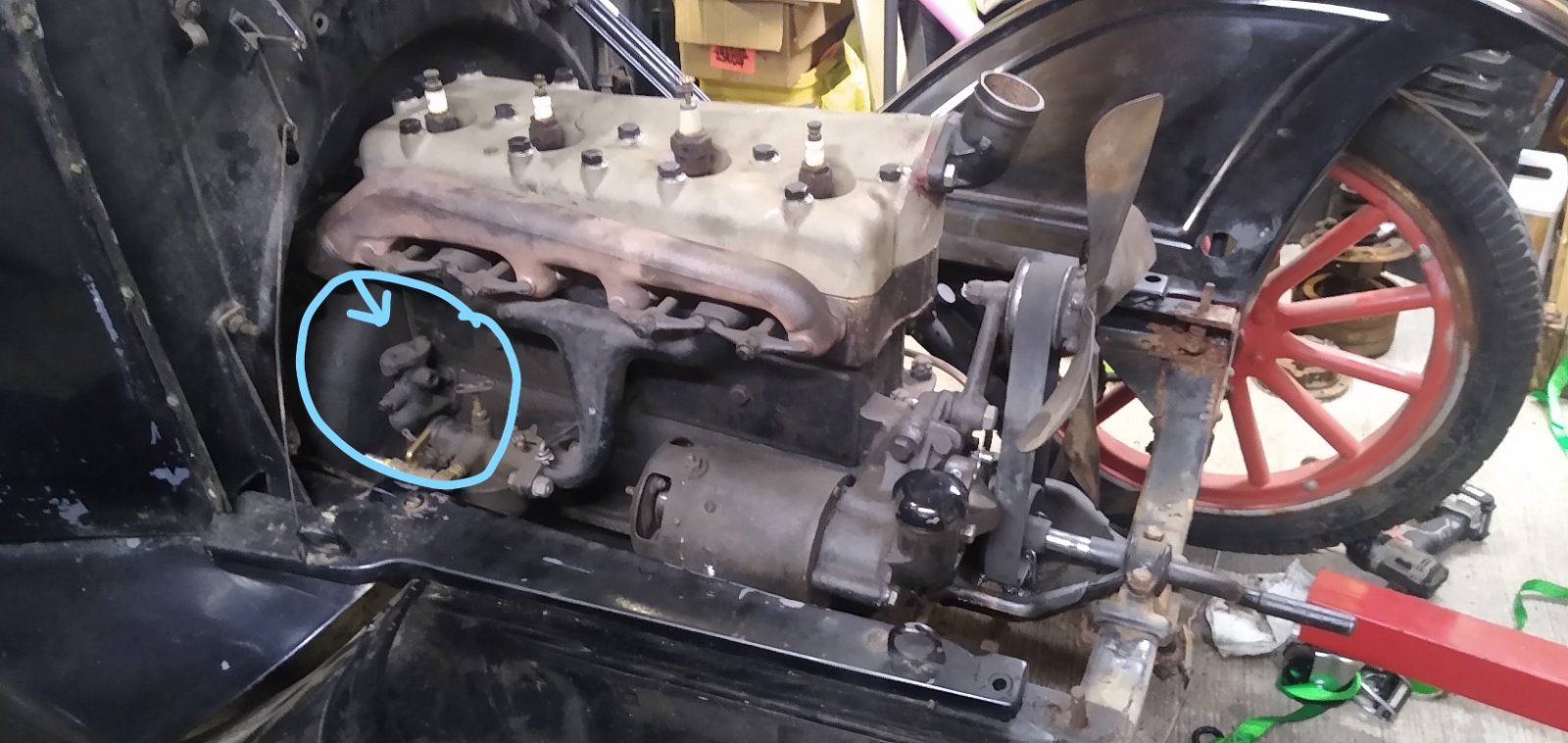 So I picked up this Motor for my 1924 coupe looks like it was made June 1921. On the right side of the block there is a housin thats not on the old motor. What its this Part?