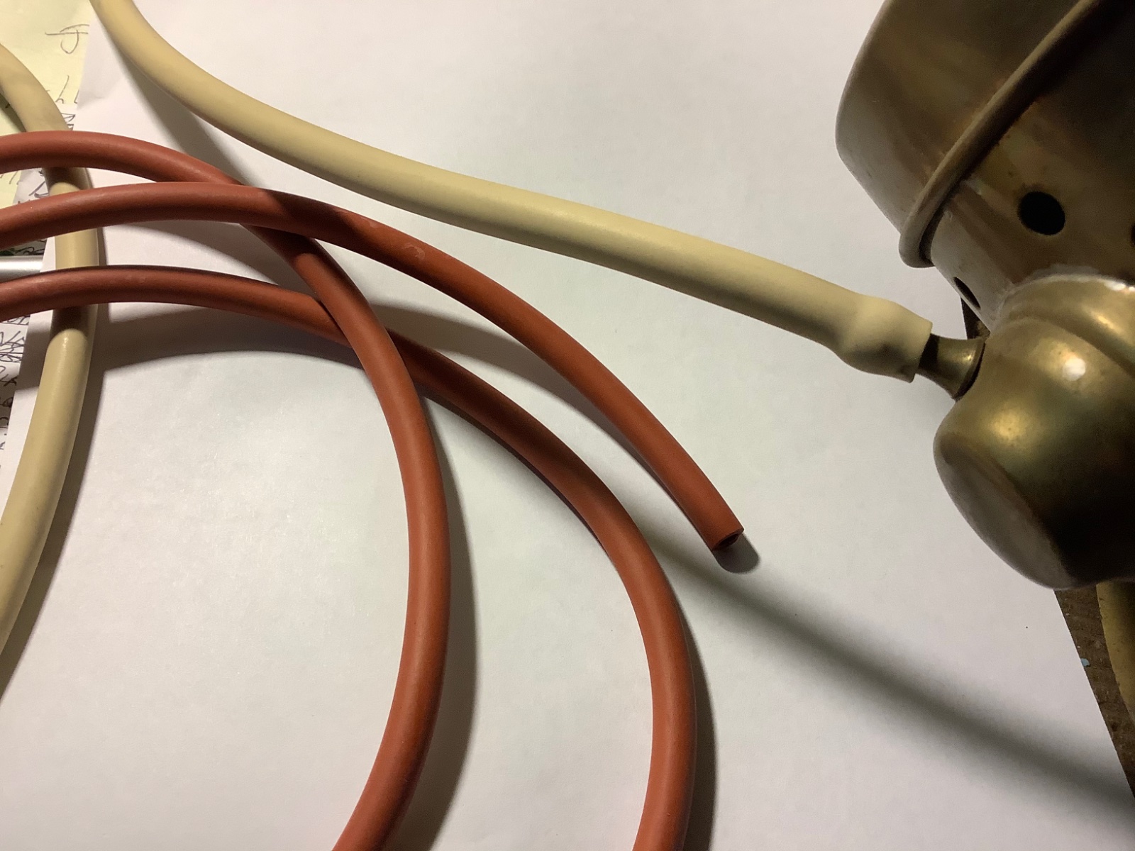 Searching through my very old supply catalogs, I come up with only one listing, shown below. Gum rubber tubing. I believe this is what early autos were supplied with originally. Stop and think. On the assembly line, would Henry have used a rubber hose , that could just be pushed onto the nibs by hand? Or would he use red plumbers tank acetylene hose that needs to be attached with clamps. This red hose Larry seeks is way too heavy duty, and made for hard use ( on a plumbers tank, for instance) that can be used, wound up, used again, skuffed around. Plumbers tanks use higher pressure appliances than any lamp ever used. I’ll say it again. Lamps use VERY low pressure. The type of pressure that soft rubber tubing can hold by itself on a bib fitting, no clamp. It’s hardly ever shown in the catalogs of the day, likely because it was a common hardware store item, easily bought when your ford hose started failing. My other picture is shown gum rubber tubing, available in many sizes, even the size Original Smith seeks. It’s pretty cheap. I’m showing new hose next to some delicate vintage gum rubber that still has some life in it. Available in many sizes from McMaster-Carr supply. If you agree, I’d grab it soon, as they just started carrying it again, after not having it for many years. The picture showing the two hoses is of old coin operated machines, with hearing tubes, made in the same period as our old cars. JMHO