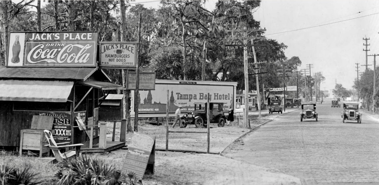 In the first photo I believe that is an Overland Champion Coupe Sedan in front of the billboard. Perhaps a 1924.