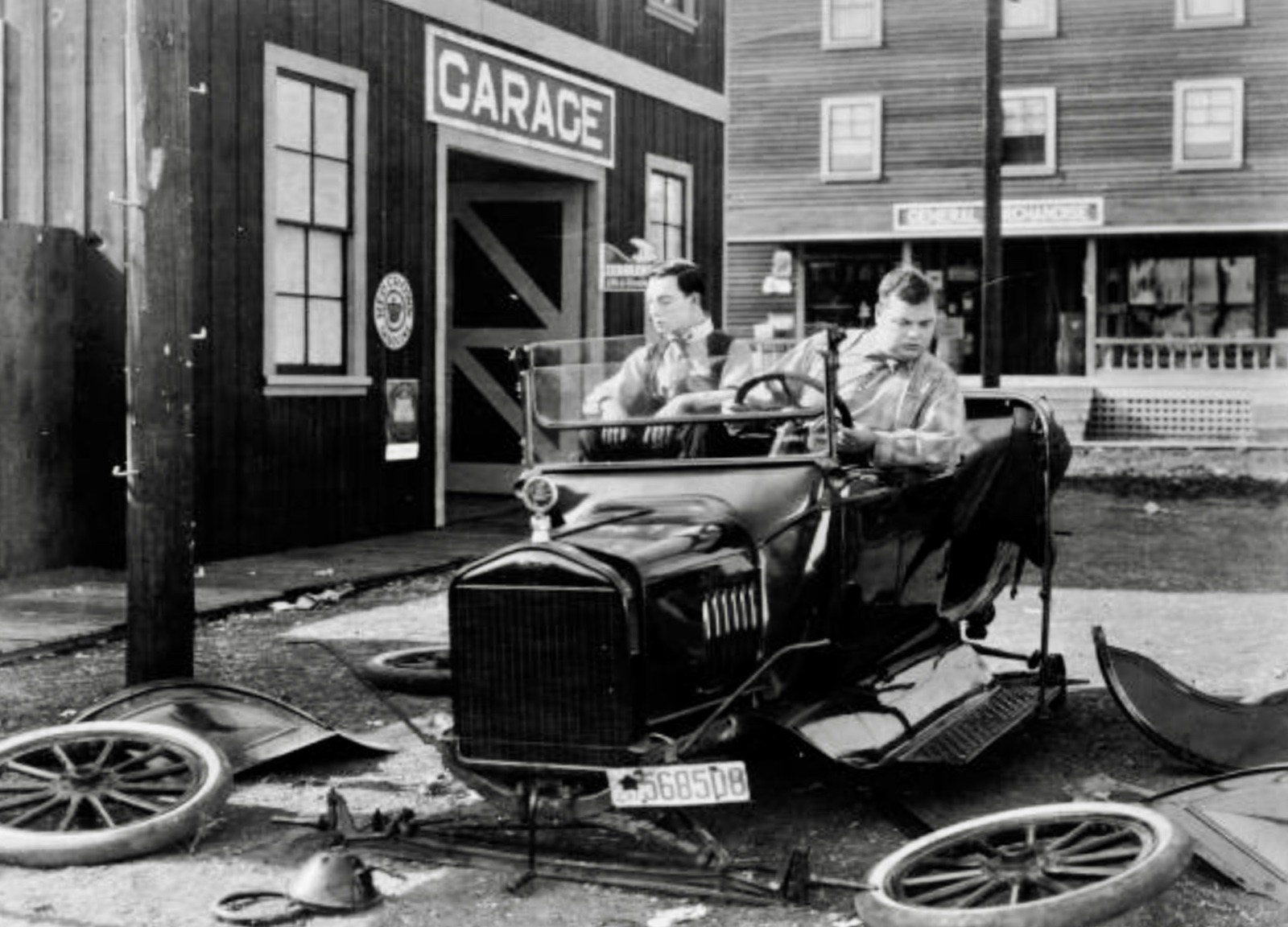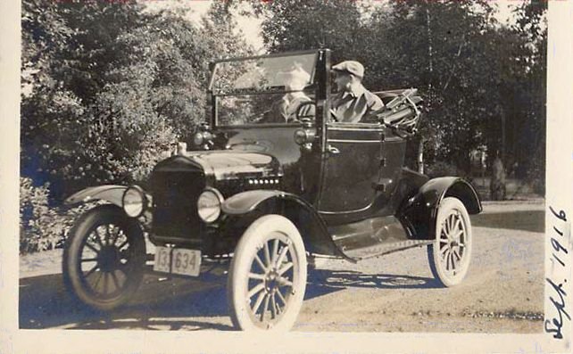 Wow! Second photo. In front of the garage is parked a '15/'16 runabout. However, of much greater interest, is the early 1917 Coupelet with the top folded down! A model made for only a few months, and in very low numbers. Even photos of the cars are rare.