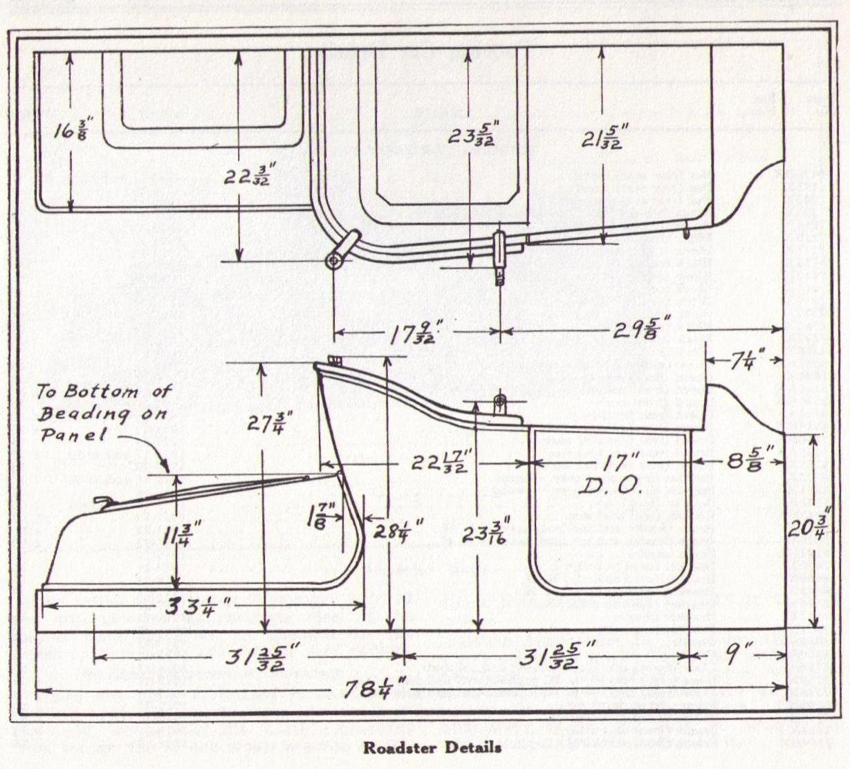 The following dimensions taken from FACTORY DRAWINGS of 1915 Roadster top: