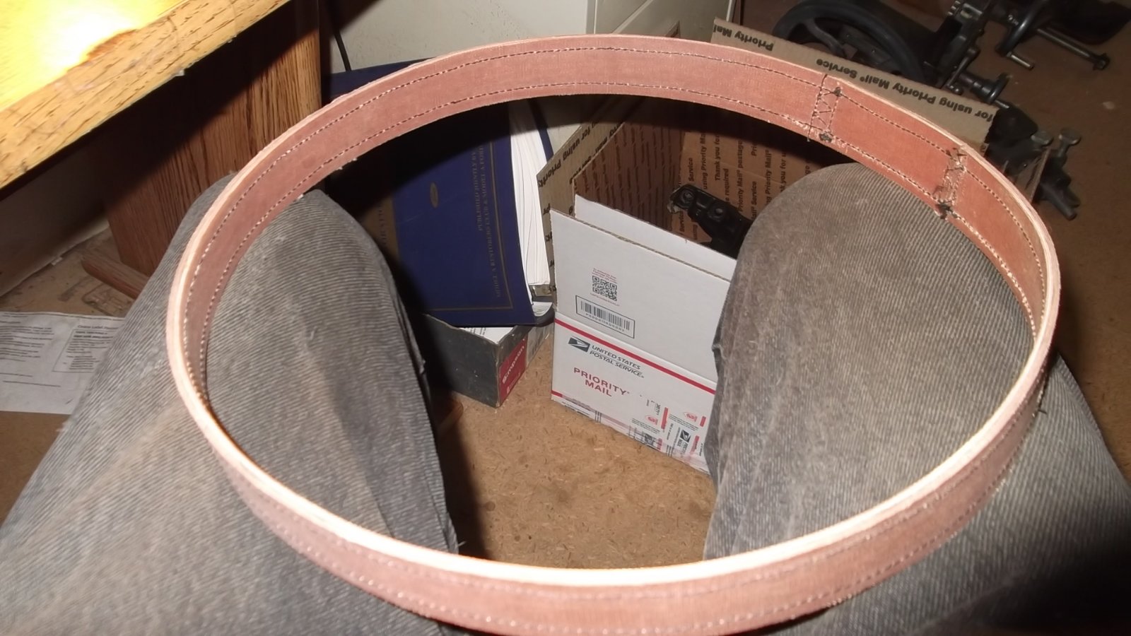 Briefly, the machine was in storage for about 20 years, used by the family for harness repair. It is a Singer class 29, an industrial machine, commonly known as a “patcher.” Mostly this type of machine was found in harness and shoe repair shops. I will down load a pic of the actual machine later. Ours is from 1914… say don’t some of you folks have 1914 Model T’s? The sewing machine is in two parts the table with treadle, and the actual sewing machine. The machine allows for slow hand stitching by turning the hand wheel, the material is fed by a walking foot. Or with speed using the foot treadle. There is no need to actually turn the work being sewn; this is done by turning the foot and the direction of feed is changed. I believe 1/8 inch leather can be sewn. The total machine with base is over 100 pounds of cast iron. If you enjoy the sound of a machine making mechanical noise , this has its own music.