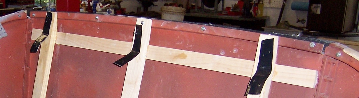 The wood was mounted originally with stove bolts, drill and countersink holes on the outside, through the wood tack strip, place the stove bolt ( flat head taper type) single slot, and then lock washers and hex nuts on the metal inside. You should find holes around the perimeter of the body edge for them.