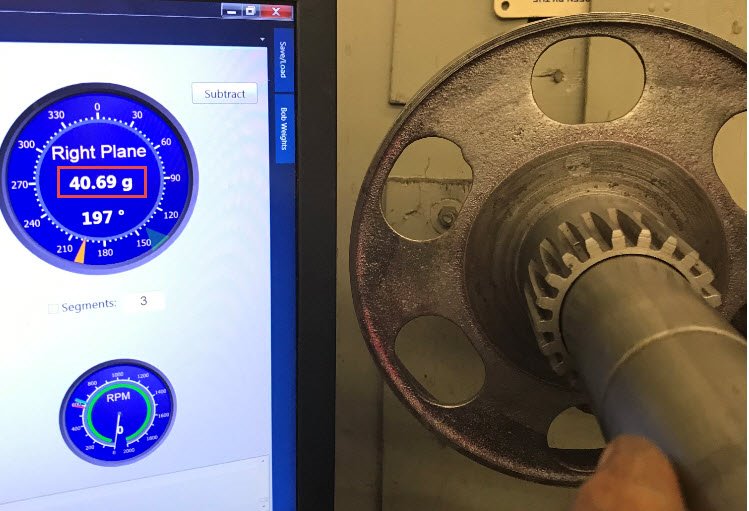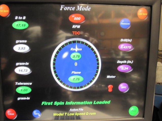 Reverse drum before- this is Balancer reading before correction: Here is actual balancer screen after correction: And Low drum before: Low drum after- notice how much material was removed from web: