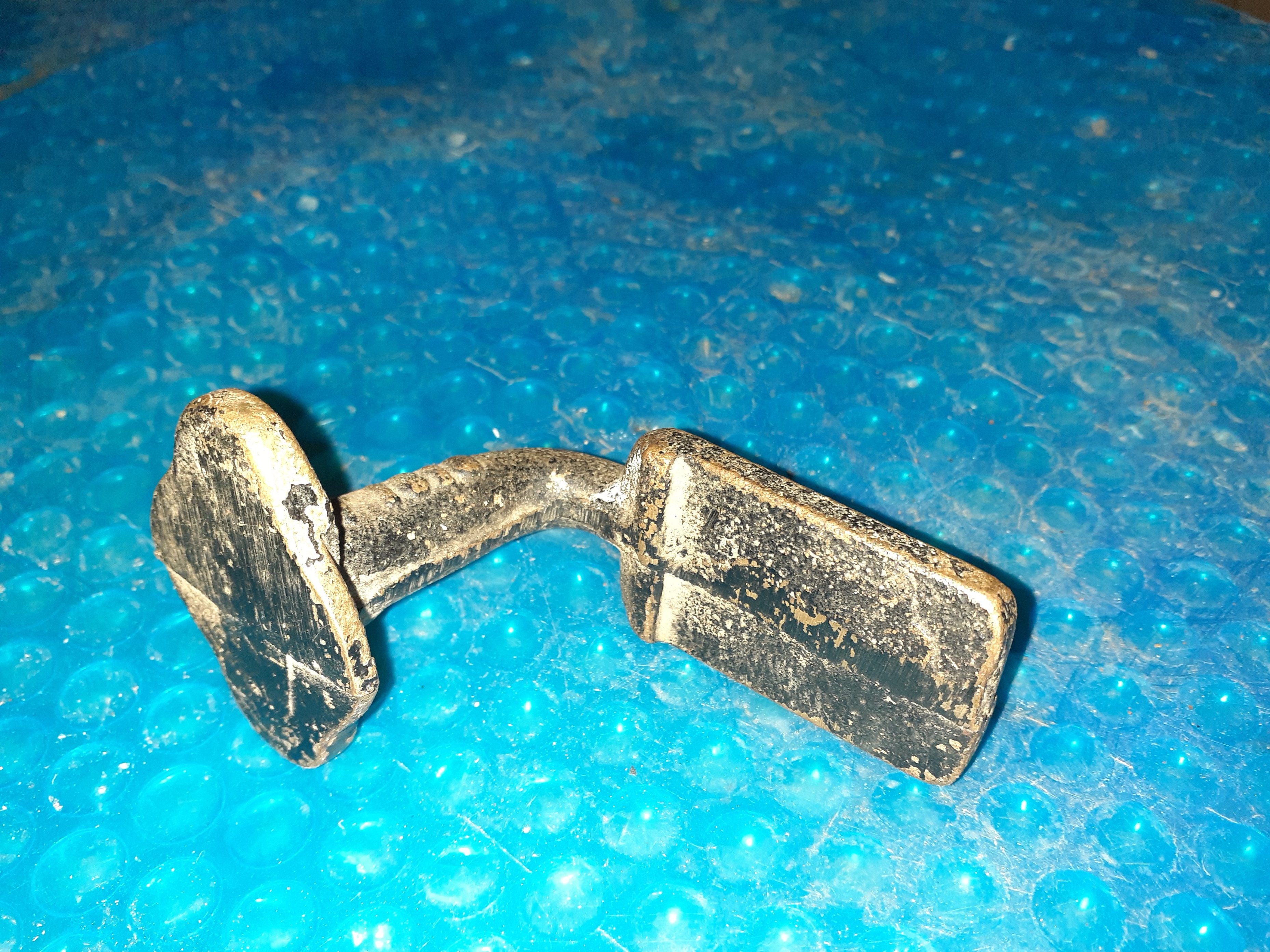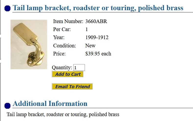 Bronze/brass casting of taillight bracket for a roadster/runabout with out license plate bracket. Wonder if someone was going to add 2ed tail light to one. The T in the number should be a Ford casting number and may not match up to parts number in catalog.