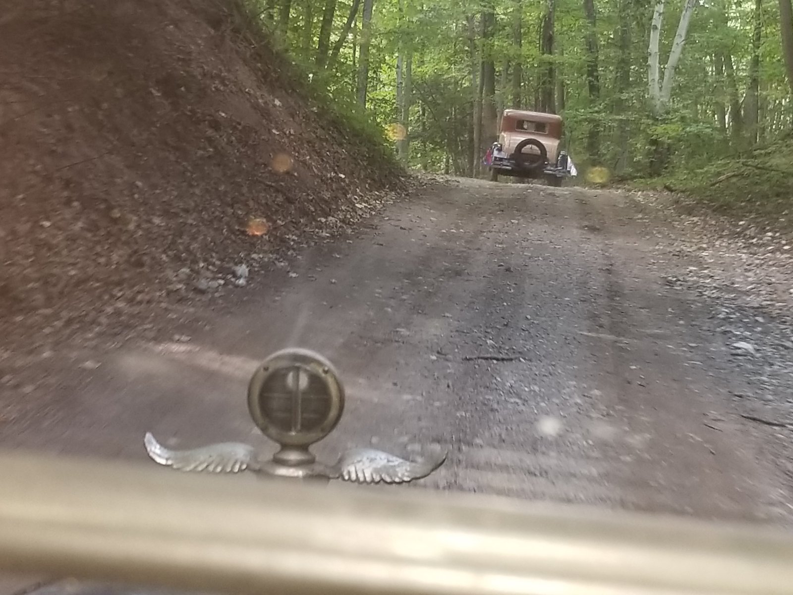 Dick, we were on a road like your 2nd photo and a lady in her modern car flagged us down. She said her husband was working on a Model A down the road a couple miles and we should follow her because he would like our cars.