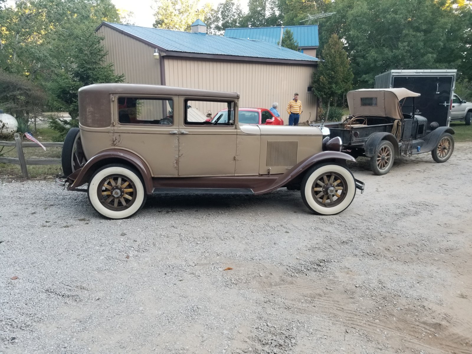 Sorry, my co-pilot was using my phone for photos. She held it upsidedown I guess. It was a fun trip with no destination except home before dark. Exploring back roads led to a few turn arounds in farm lanes and dead ends. All part of the fun! All the cars ran original equipment they came with but my T with the Muncie. The only guy running 12V was the 25 Dodge Brothers and that is ok. :D