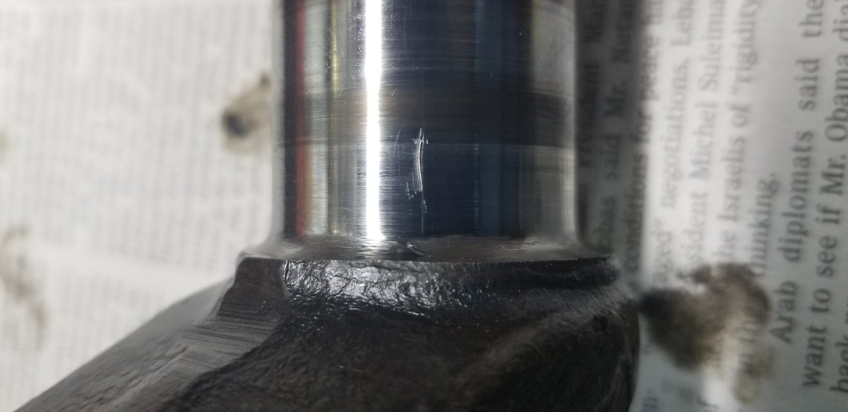 Charlie... you are not entirely wrong. I'm not trying to talk anyone else into anything. I'm just presenting what the shop found today, and my take on the crack. In response, I'm fishing for feedback. I never use this car. It hasn't had 100 miles put on it in the last 40 years.. But it's been in my family for 72 years and its here to stay. I at least want to be able to start it up and move it around.... maybe take it on a 10 mile run once a year. But it will NEVER be a tour car. And because of that, I cannot justify 1500 bucks for a Scat crank. So, I either need to find a good used crank that measures 1.245 all the way around, or calculate my probability of destruction...