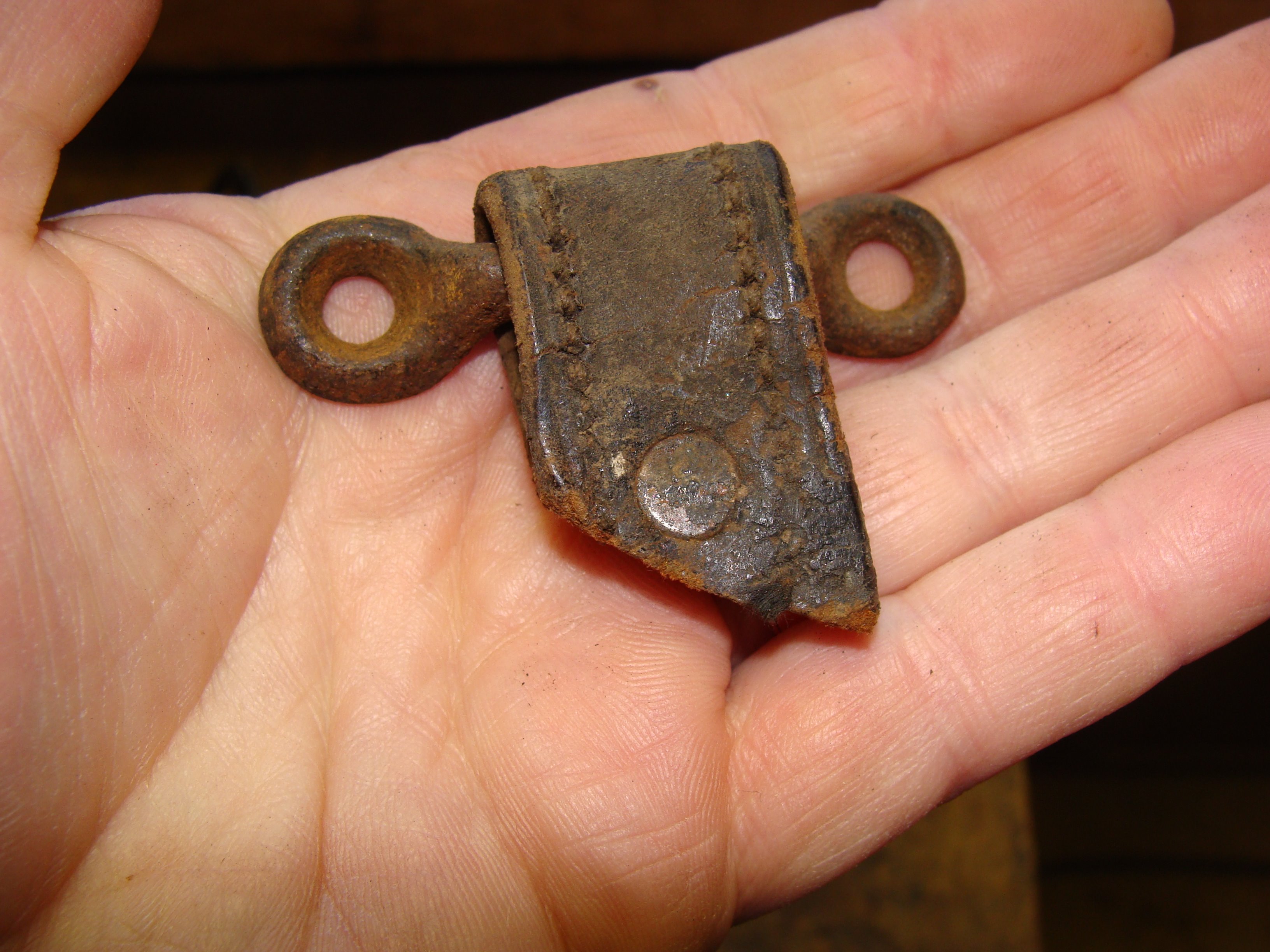 I believe on earlier cars these traps are sewn, later cars they are riveted. Here is my original strap, sewn and riveted.