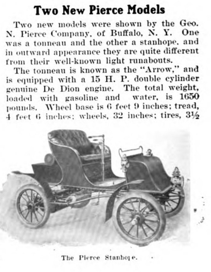 Nice write-up in the "Cycle and Automobile Trade Journal", for April 1, 1903, on the Pierce Stanhope and Pierce "Arrow".