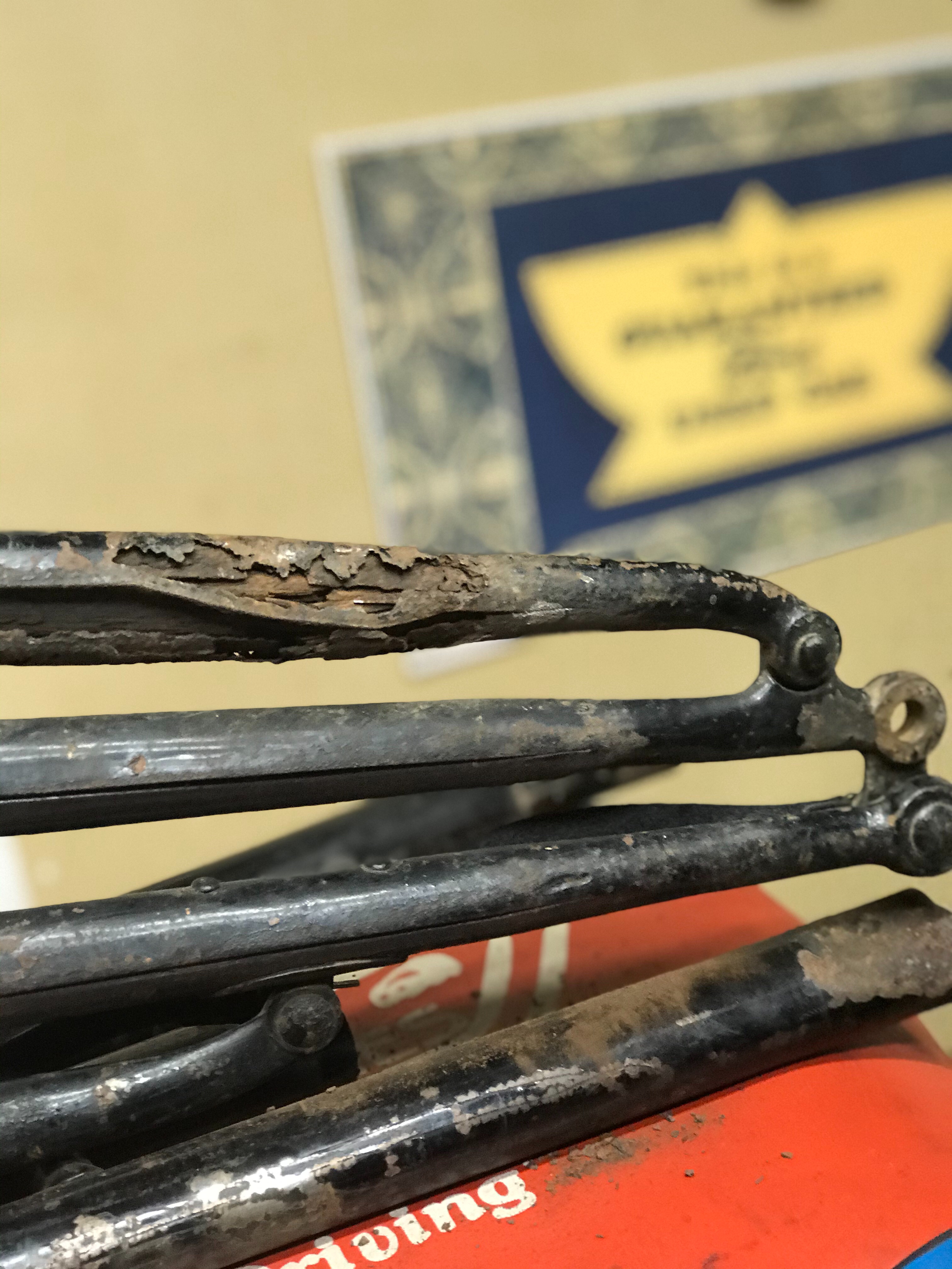 They have some minor (but very nicely done) repairs that look to be more than 50 years old and have a gorgeous patina that matches my car perfectly.