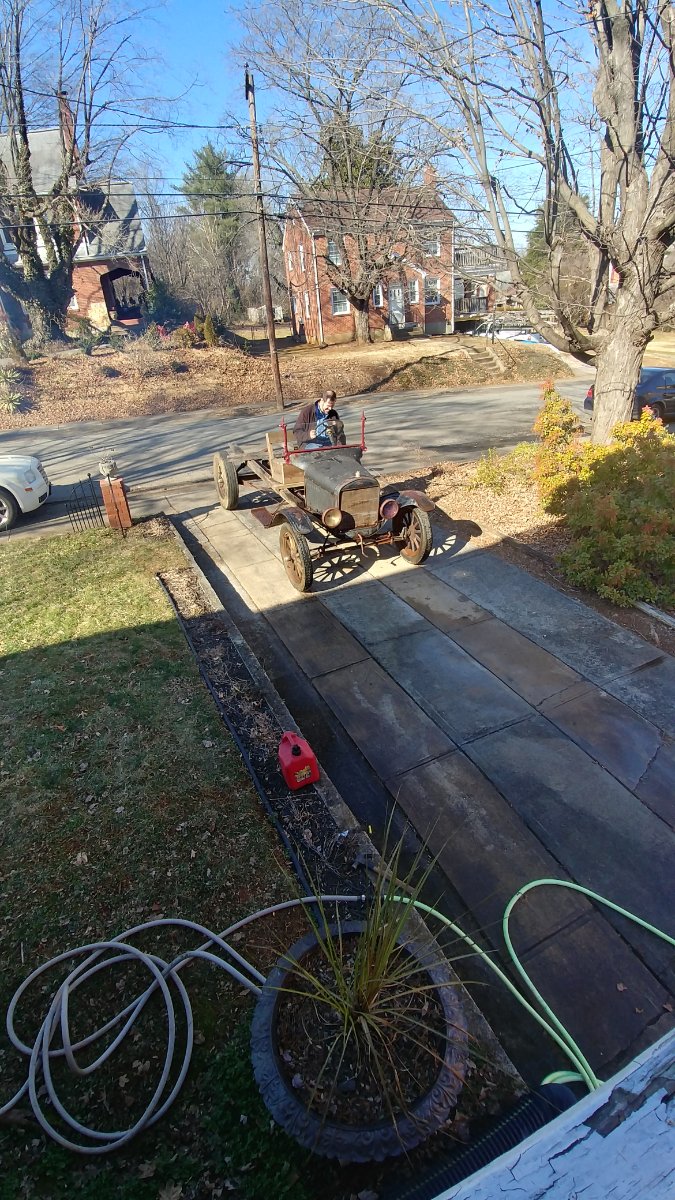 New to site , wanted a model T since a child , just turned 40 . found this nearby , a TT chassis and running gear . Appears that someone put an earlier cowl on it someone said . Motor and trans are a Sept of 1926 , she was found in a barn and sitting since 46 , the serial number on engine matches number I found on frame . All the information I've learned has been from you guys , from how to find serial number and date it , how to get it ready to run, how to start it and even how to drive it , I put fresh coils in it , new plugs , cleaned the Kingston carb , cleaned and re installed timer , I primed her and then switched to battery, one quick 1/4 pull and she was running, she will give me a cold start after sitting for days with just a quick pre prime , and hot starts several times , ,checked her fluids drained and refilled everything to specs from you guys . The first drive down the street turned into several trips around neighborhood, I never stalled it once and took to driving it like a duck to water . Now trying to figure out what go do next ? Was thinking since no cab , ill build a floor and use an old teens Studebaker seat I have , build a wooden bed and enjoy it for what it is . Next is to fix front wheels , I have several loose spokes and I plan on respoking them (21 inch ) the back wheels are rock solid . Maby one day ill find a decent driving older restoration T, I can afford . But I'm glad I could save this Lizzy from turning into dust . Hoping to go to Charlotte spring car show in a month and find some odds and ends the windshield frame was an add on from a donor car the owner picked up before selling to me . My great grandfather nor my grandfather lived to see me finally get one , I'm sure they would have gotten a kick outof of it , or thought I had lost my mind . My biggest hurdle is building a floorboard with nothing but a bare frame , no risers or pattern or anything.so it will be a learning process. Thanks again for everyone being here and all the information, you guys became instant family .