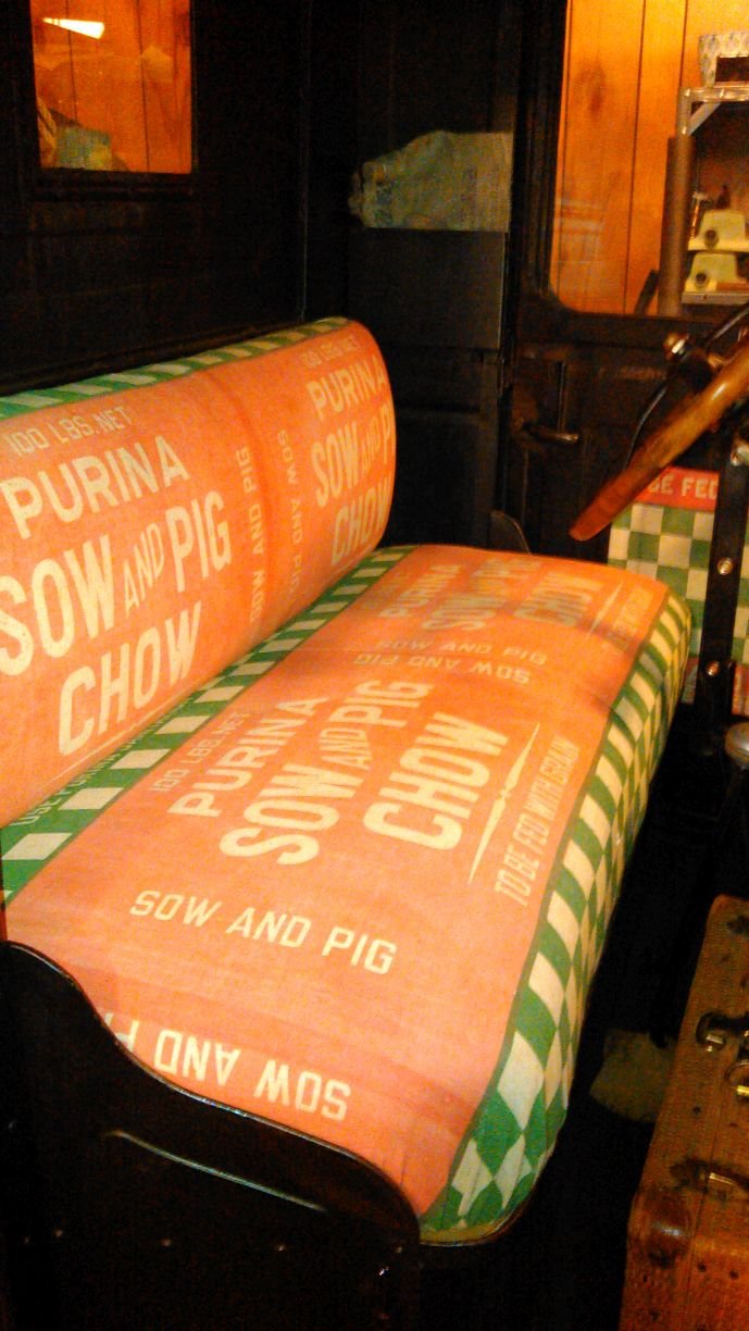 This is what I did for seat covers in my Model TT farm truck. Those feed sacks were the reusable type and are like a lite weight canvas