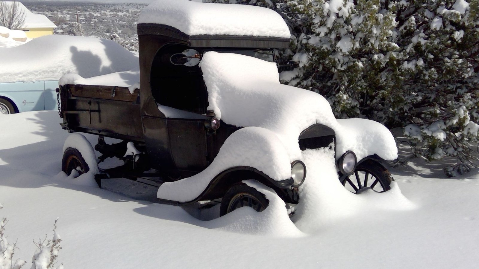 Interesting how snow accumulates on model T’s and other vehicles of the era. The thought even crossed my mind to wheel mine out during the same storm.