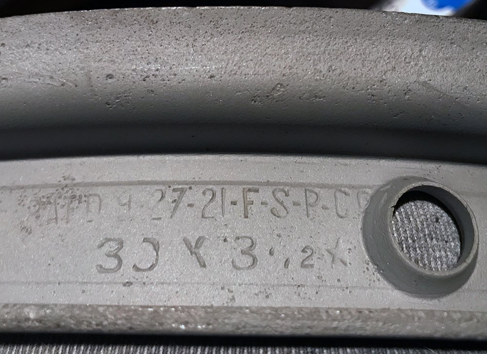 I bought a rim to use in building a new rear wheel and came across this stamping. I know what the 30 x 3 1/2 means but does the other tell anything about it's origins?