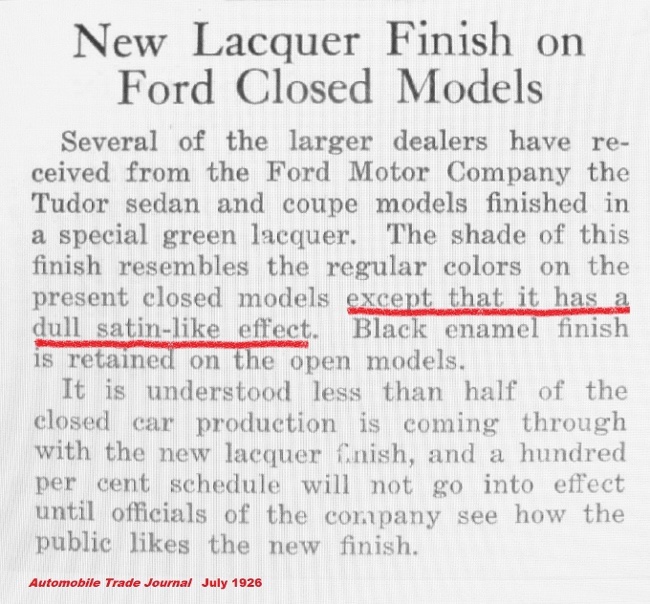 Note the news article on satin finish for the new Fords.