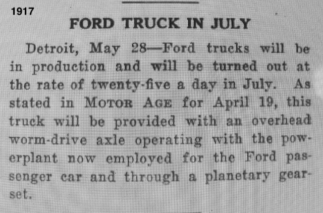 Someone sent me a April 19, 1917 "Ford Truck Ready Soon" news item.