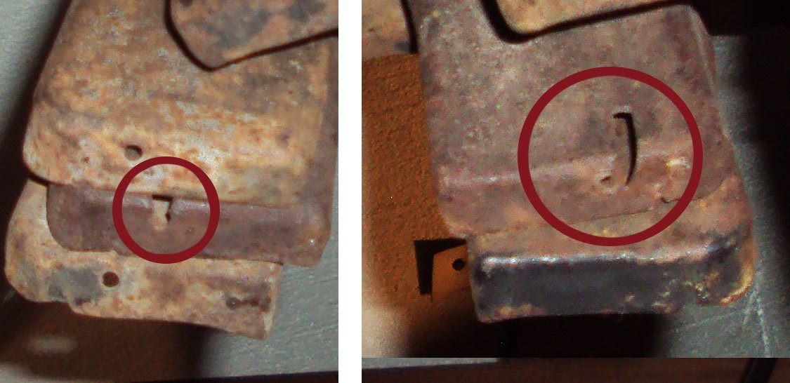 The ones shown above with the top down slots cut in them, could be from the firewall that has slipped down and was riding on them. That would be approx where the edge would be. I looked at the ones on my 25, the back end is hidden by the firewall and body so can's see much except a little bit of the end sticking out past the body.