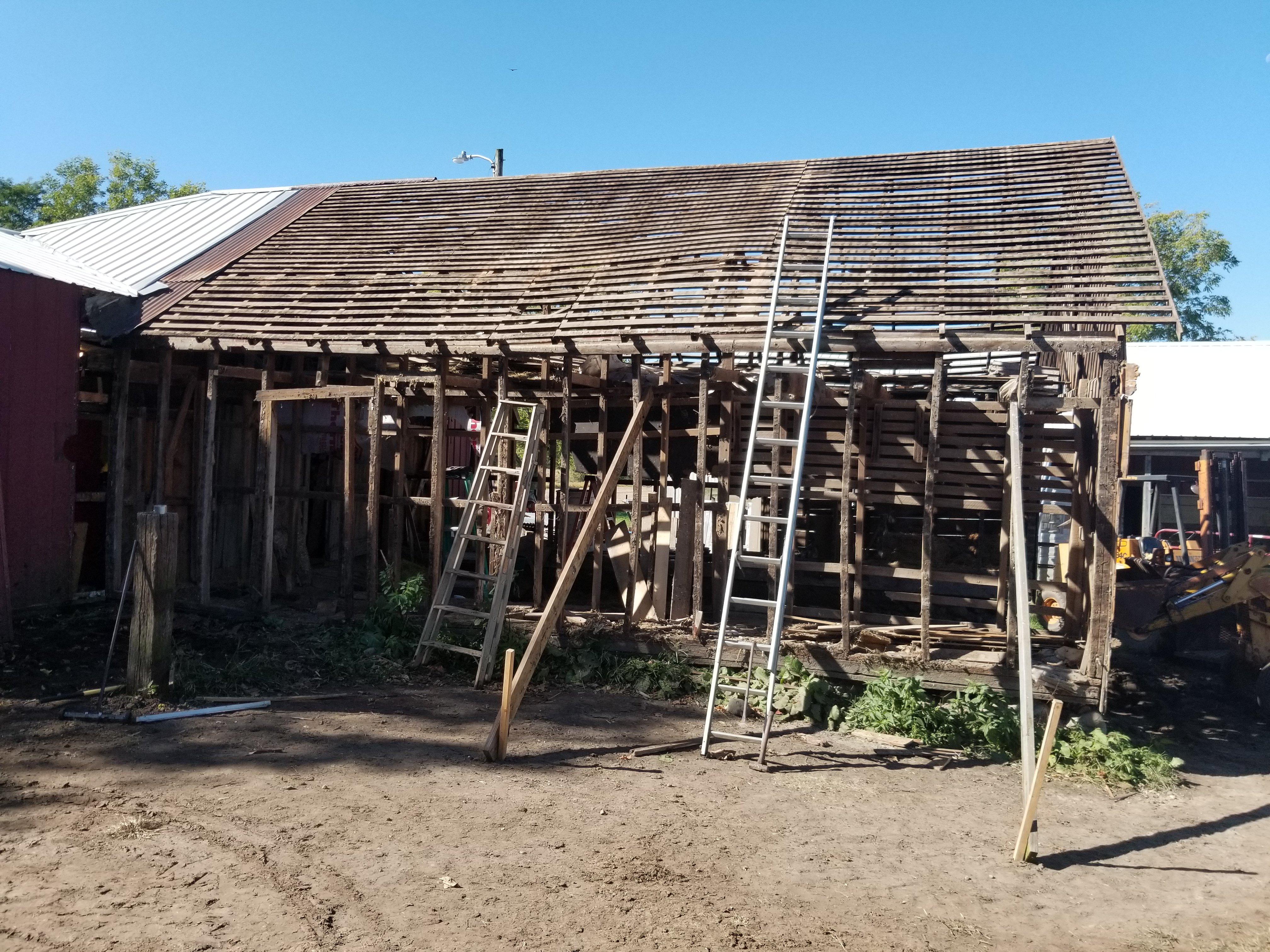 I did the same thing 5 or 6 years ago with the old corn crib that I wanted to save from the farm but it was in poor condition so I took it down one board at a time and rebuilt it inside the pole barn to use as a workshop. I replaced the 2x4's with reclaimed lumber and only had to buy the floor joist for the loft on top of it and my old wood is on the outside of the work area so I don't set it on fire when welding. From the outside it looks like we built the pole barn around the old shed and it is also 20x32 so I can heat it and work on one at a time or two if I feel crazy and just want more clutter.