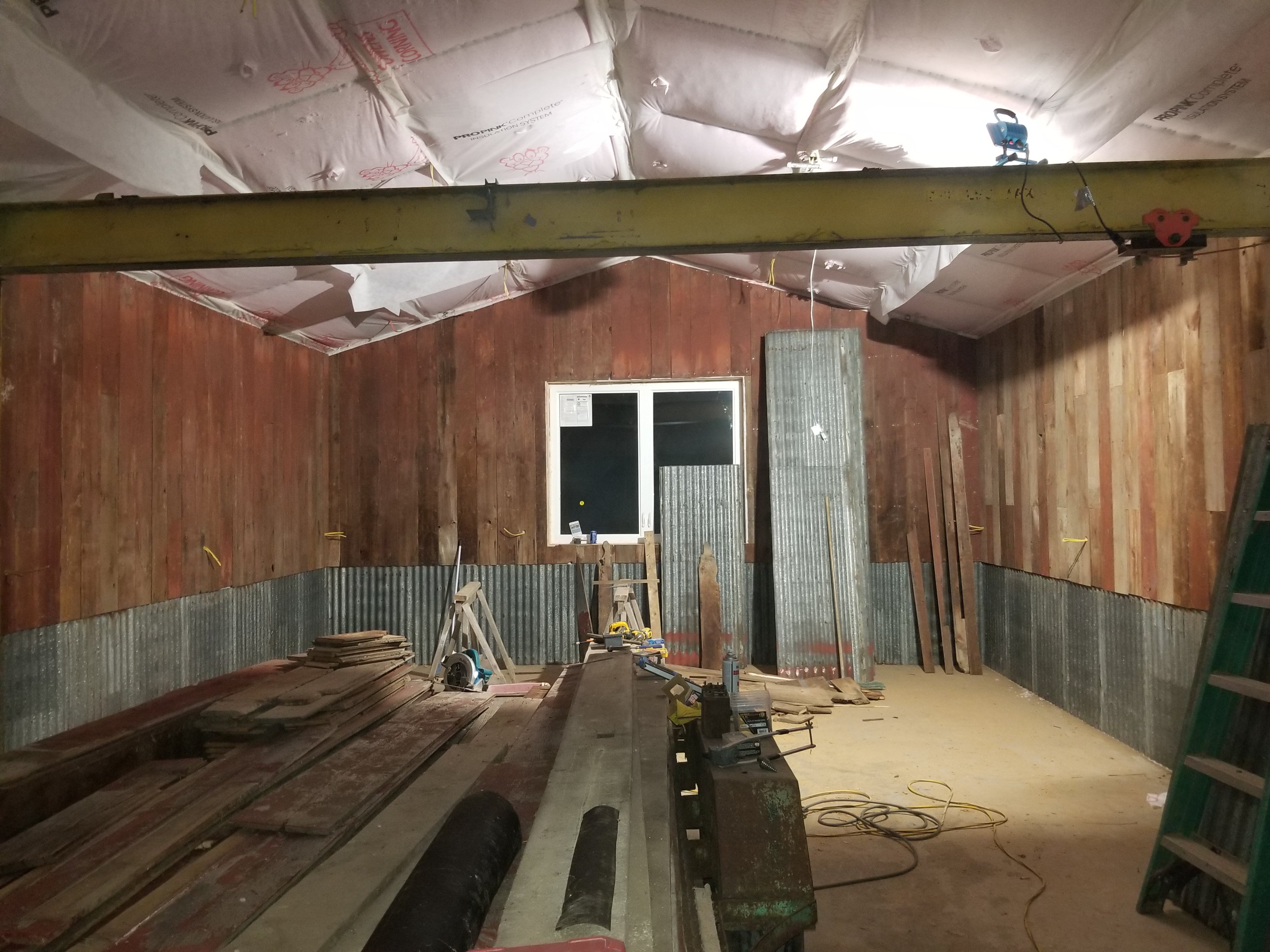 Thanks Allan, the metal on the ceiling was the old roof metal. Rusty side up and the large panels were exactly 10ft- 1in. Perfect length for new shop ceiling. Of course I planned it that way
