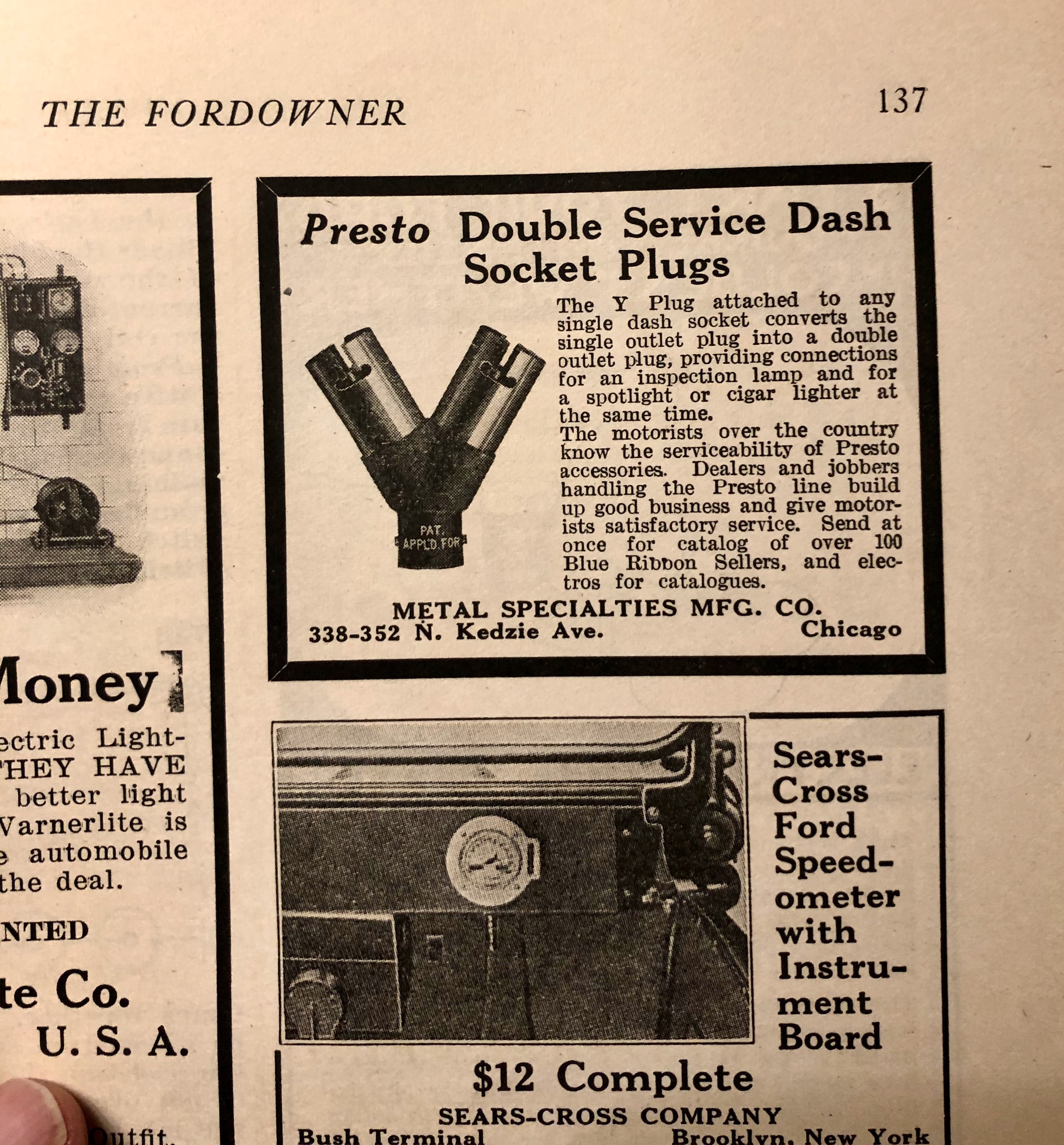 Reading a newly acquired Fordowner magazine, found this adv. for that dual socket you have.