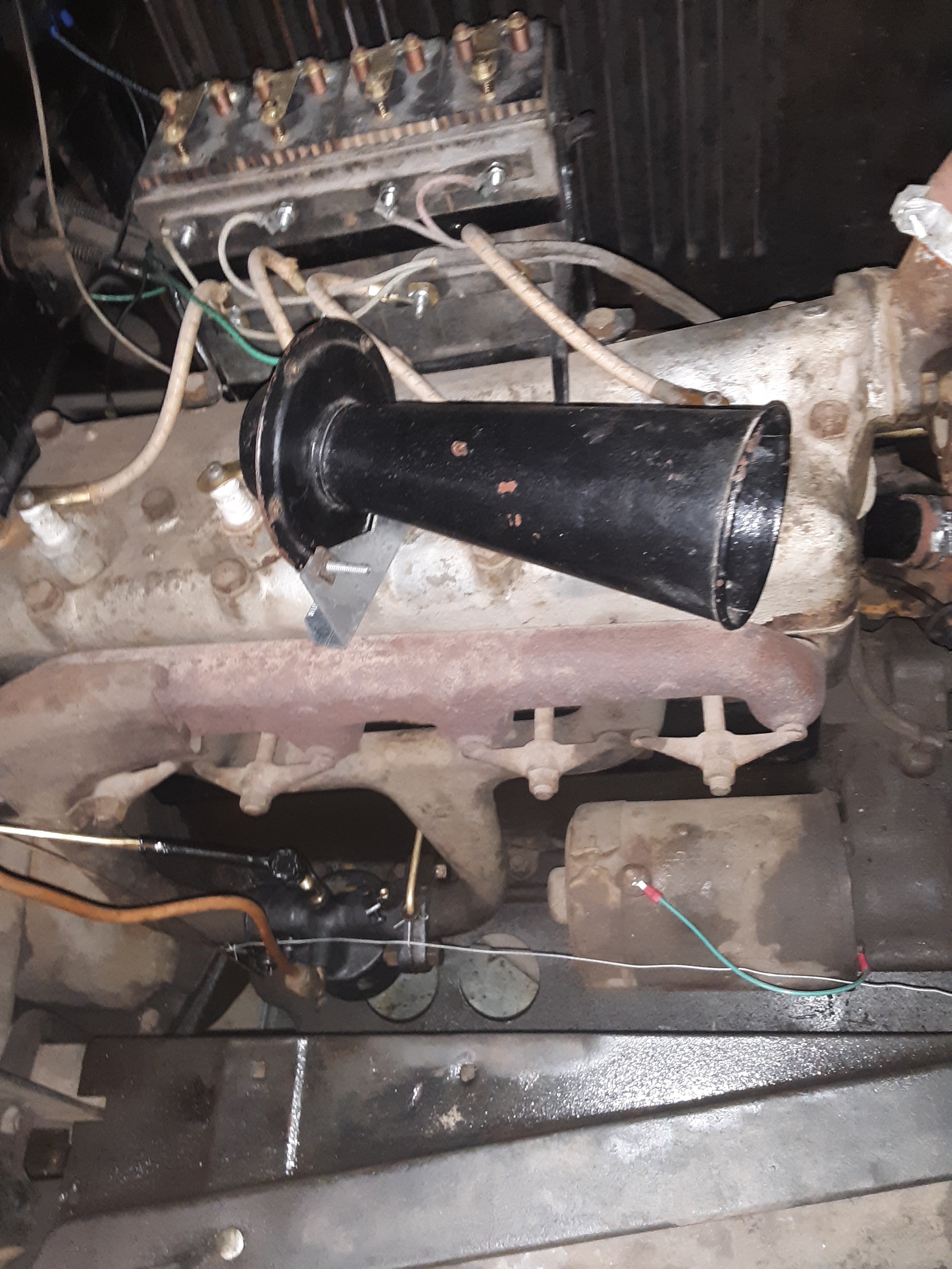 I think the spark plug shorting to the long screw, (which should be trimmed), would simply send the high voltage directly to ground, which shouldn't hurt anything, aside from ignition in #2Norman Kling wrote: ↑Wed Dec 16, 2020 9:22 pmIf that car has a battery and a generator, it should have a battery horn.