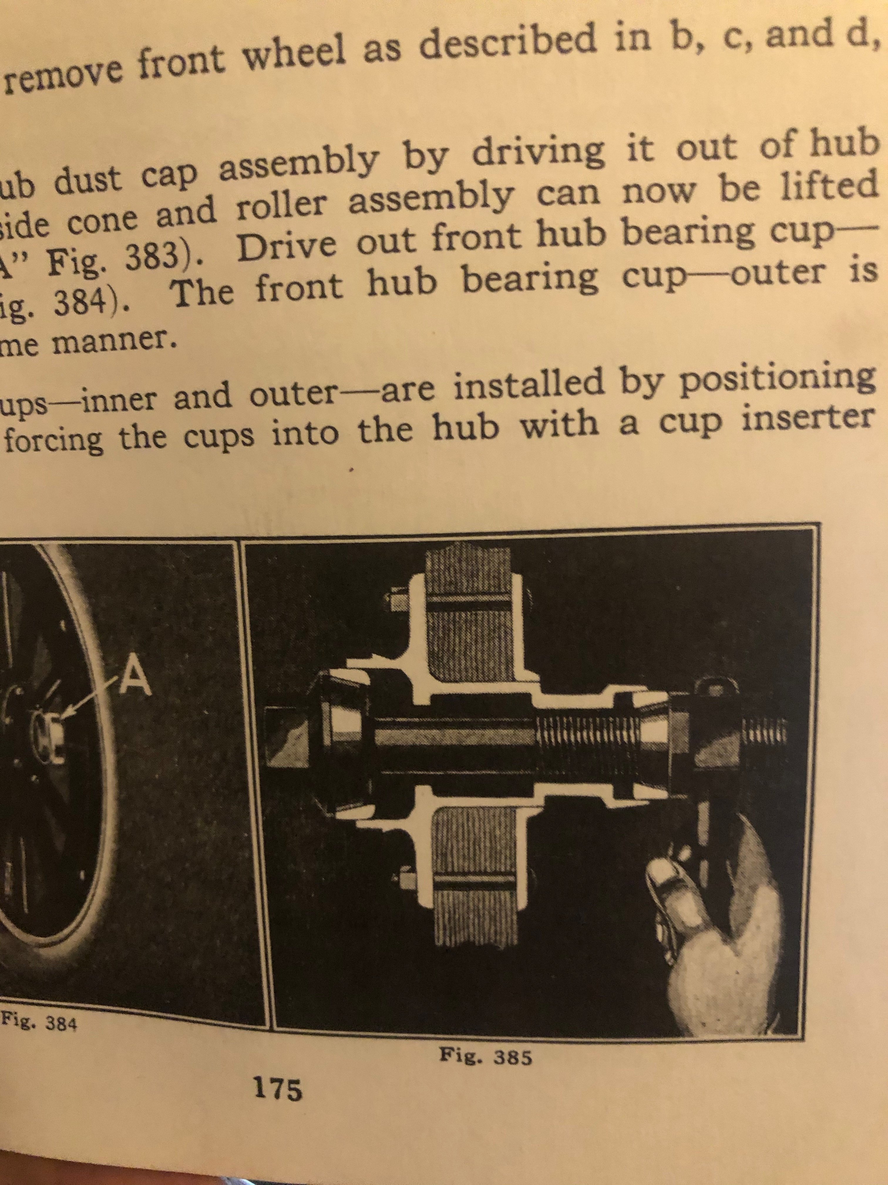 My question: Reading up on the job in the Ford Service manual (p.175), there is a special tool shown for pressing the races into the hub - a Bearing Cup Inserter (fig. 385). I don't have this device. Can I make something out of a bolt or some such? Or (carefully) tap the races in with block of wood? How have some of you performed this operation?