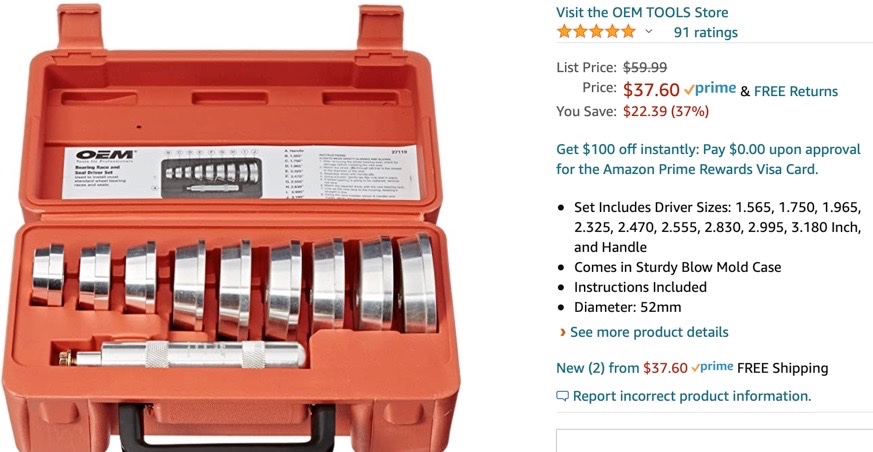 There are available driver sets, but the dia. needed for the small outer is approx. 1.93" and for the large inner race, about 2.7"