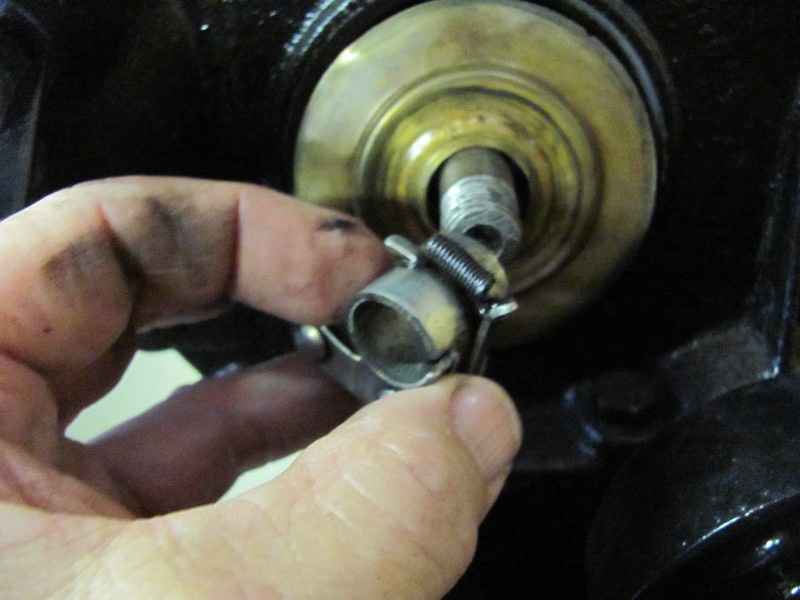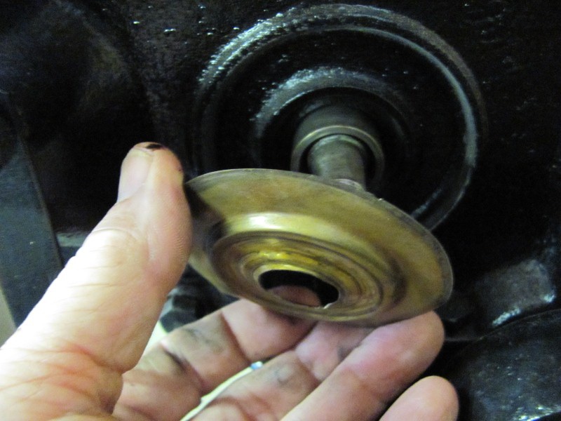 What I am seeing may have been a shim to move the rotor/brush out. There would not be any brass piece like that in that location. When the original felt seal was installed, there was a brass shield held in place by the timer, the shield center hole went around the large smooth part of the cam gear retaining nut, not between it and rotor. What I am seeing is not part of the cap that holds the rotor/brush pin in place.