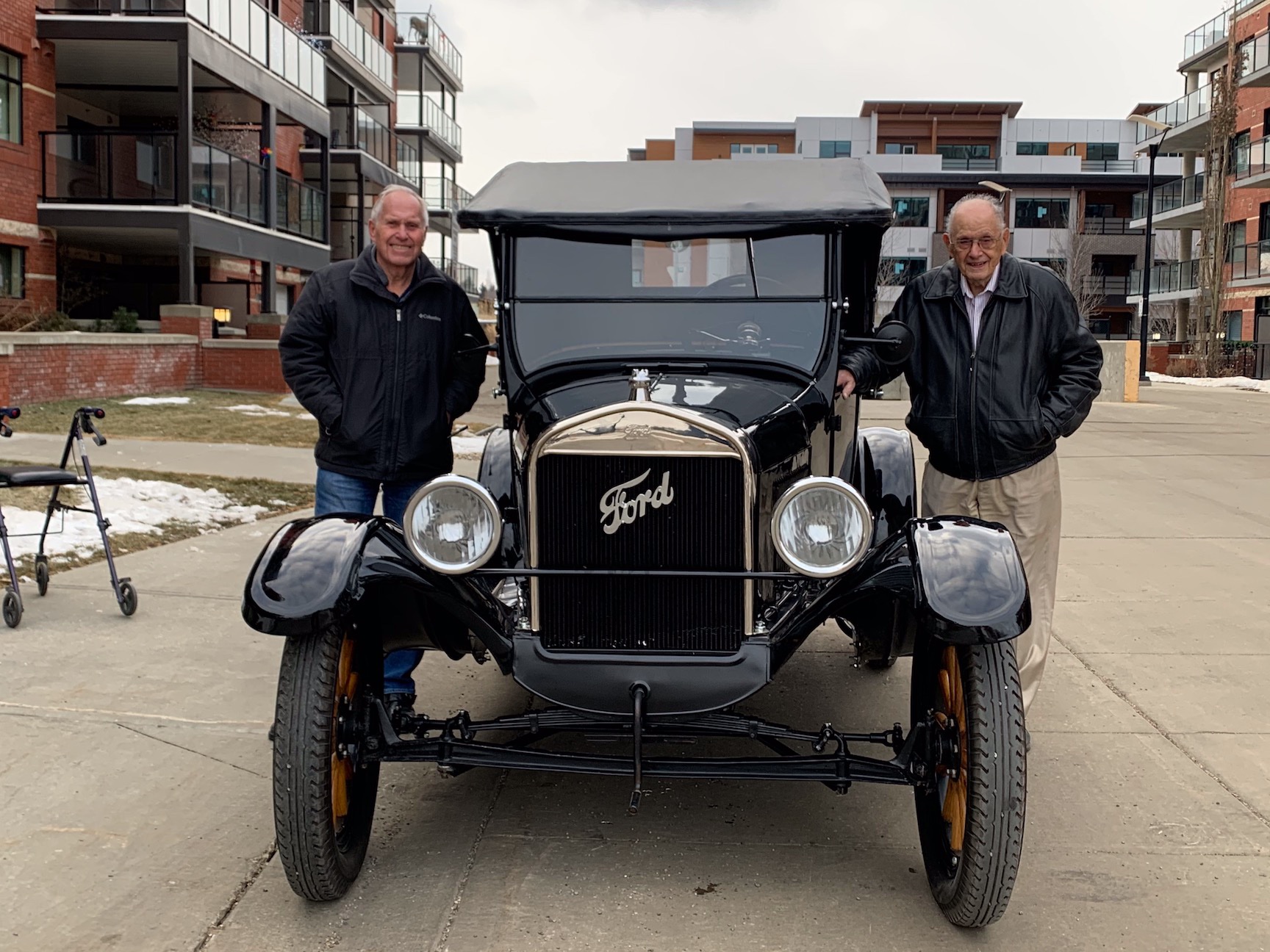 Several of the founding members of the Edmonton Antique Car Club in 1962 are still with us — founding member Bob England is not only still with us at 96 years young, but also still sharp, still driving, and as of 11:00 this morning, still falling prey to the T affliction.