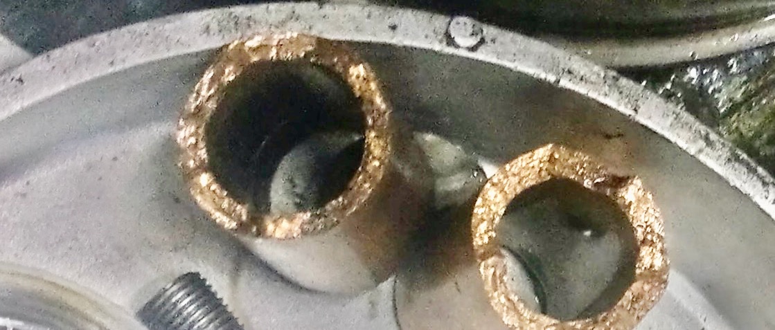 Might just be the angle of the photo of those twisted off bushings, but seems to me they are missing the very important oil grooves to allow oil to the bearing surface.