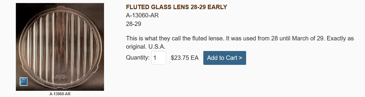 That listing for "Rare Model T lens" is wrong. That lens is the early Model A fluted version, lots around, this listing is on eBay now with a price that is more in line with the part. The seller is just looking for that casual sucker to come along, trolling for a quick bite on someone's wallet!