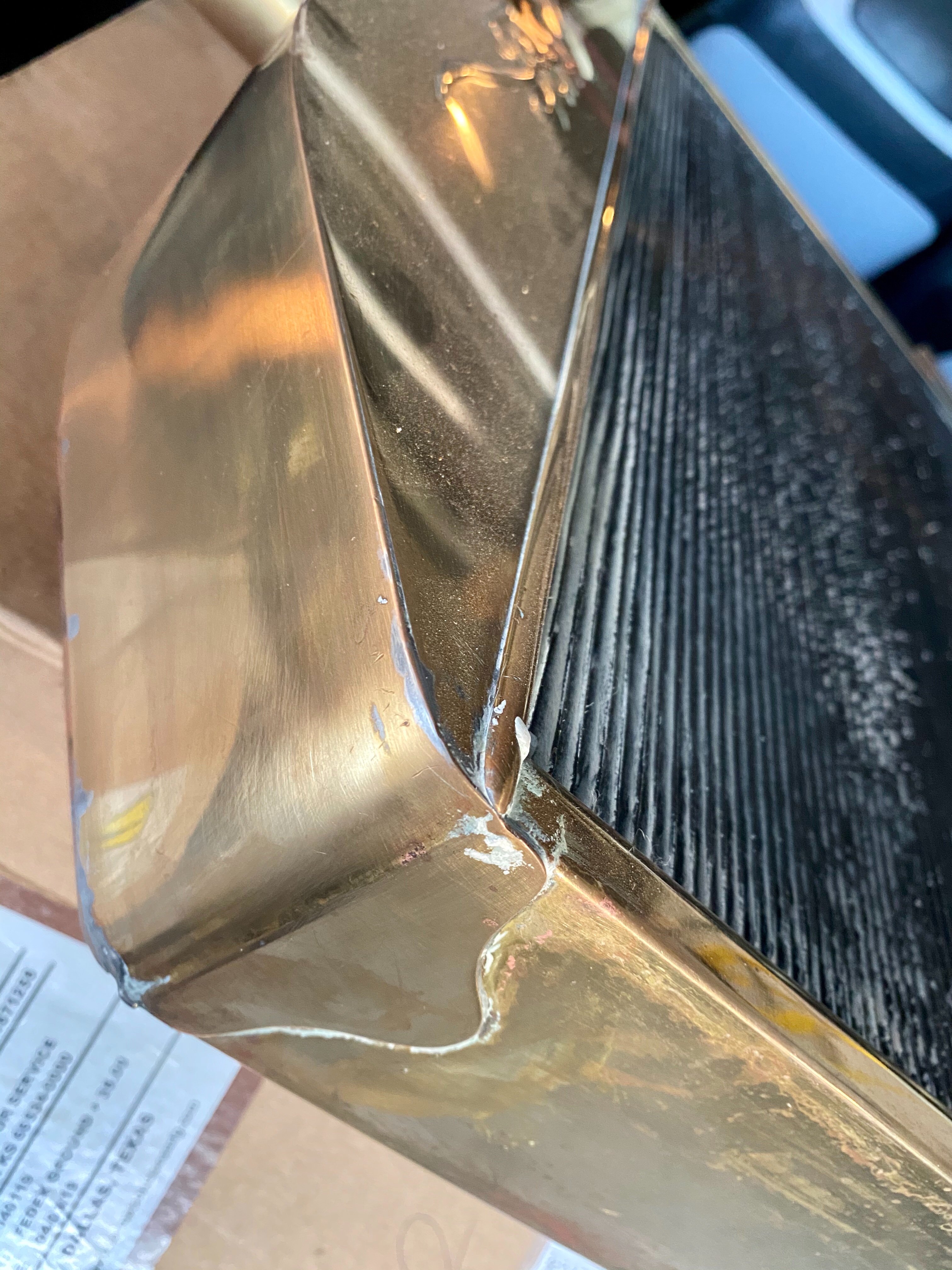 He rebuilt this Model S Runabout radiator for a friend. The seams were coming apart around the brass tank as the old solder had let go: