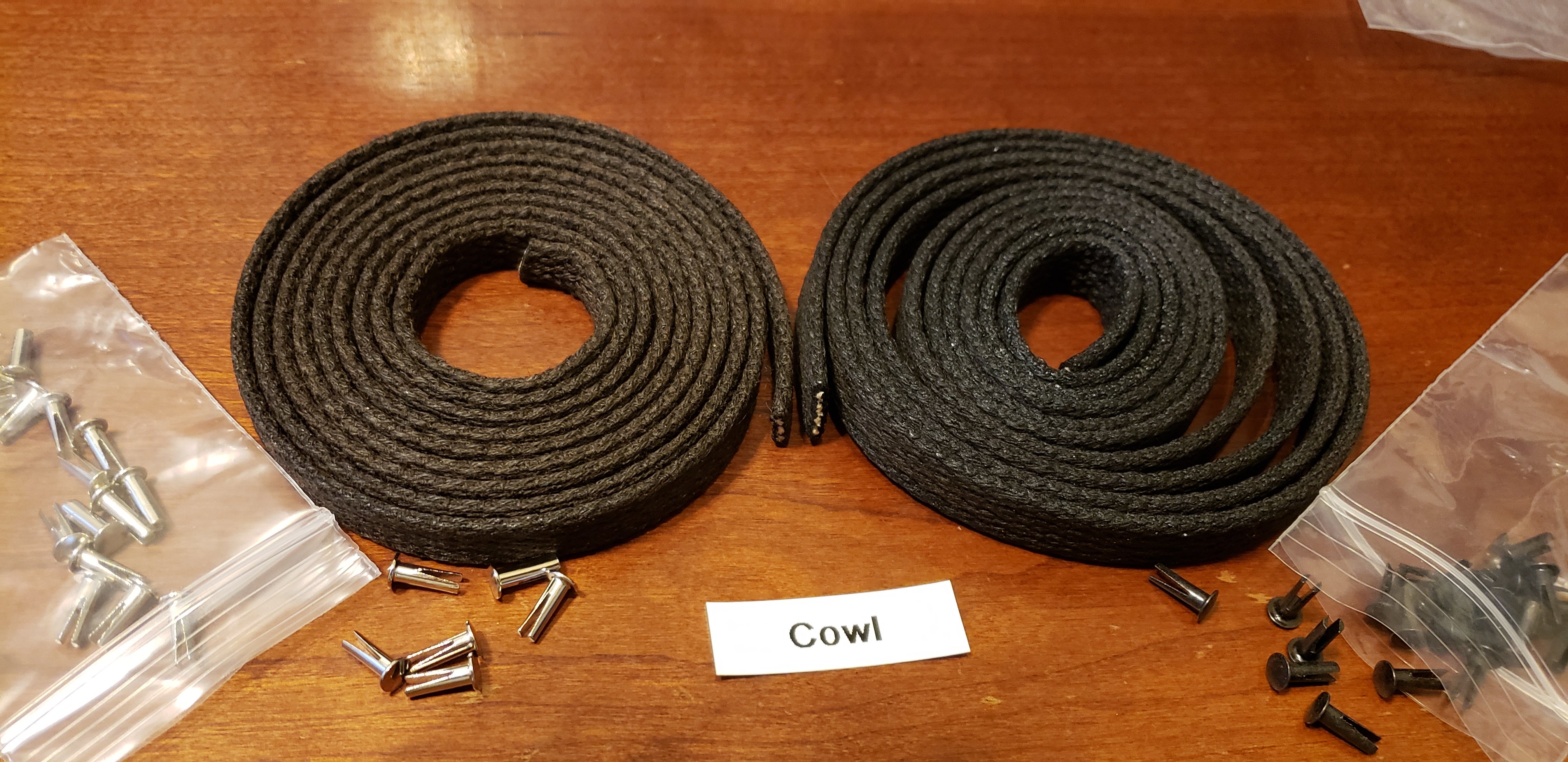 Larry, I could not find in the Ford Service Manual where it talks about the cowl lacing size. It does have a few photos one of which shows the head of the rivet to be exposed to the outside. Another thing is the two sets from venders have either black or nickel rivets not brass. It seems that brass is what is shown in the FS Manuel. Hopefully, we can get some other input here regarding these details. Perhaps they were nickel which later faded.