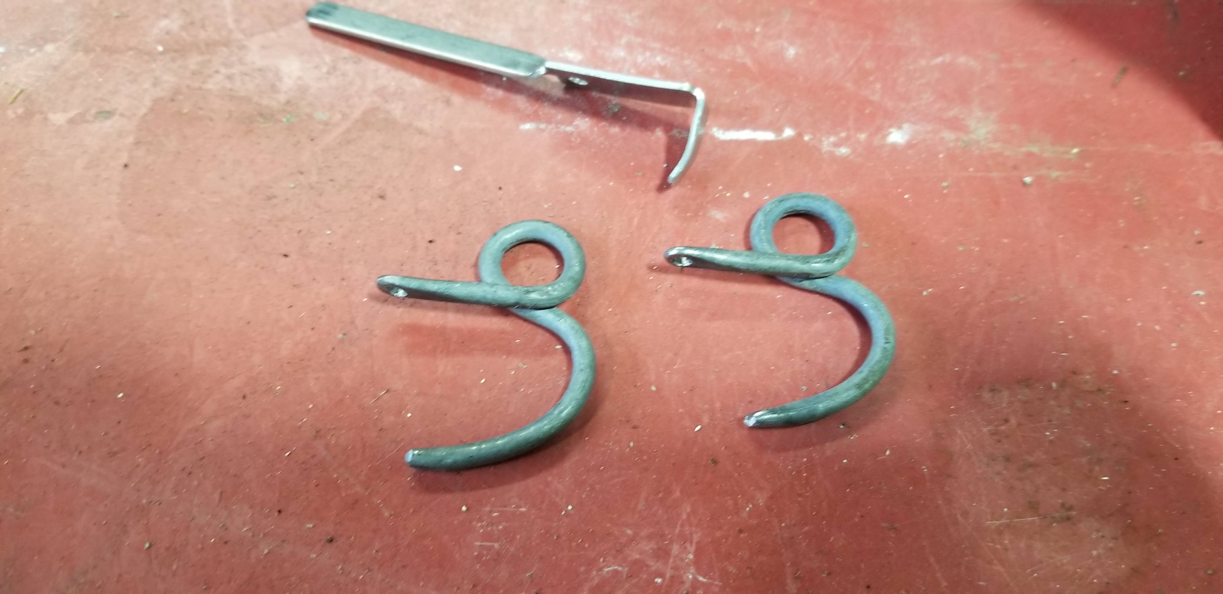 We took a 20 mile ride today and those damn hooks must of popped off of the doors 50 times. As soon as we got back I whipped up a pair of hooks from my memory of what the factory ones looked like. They work perfectly! Done.