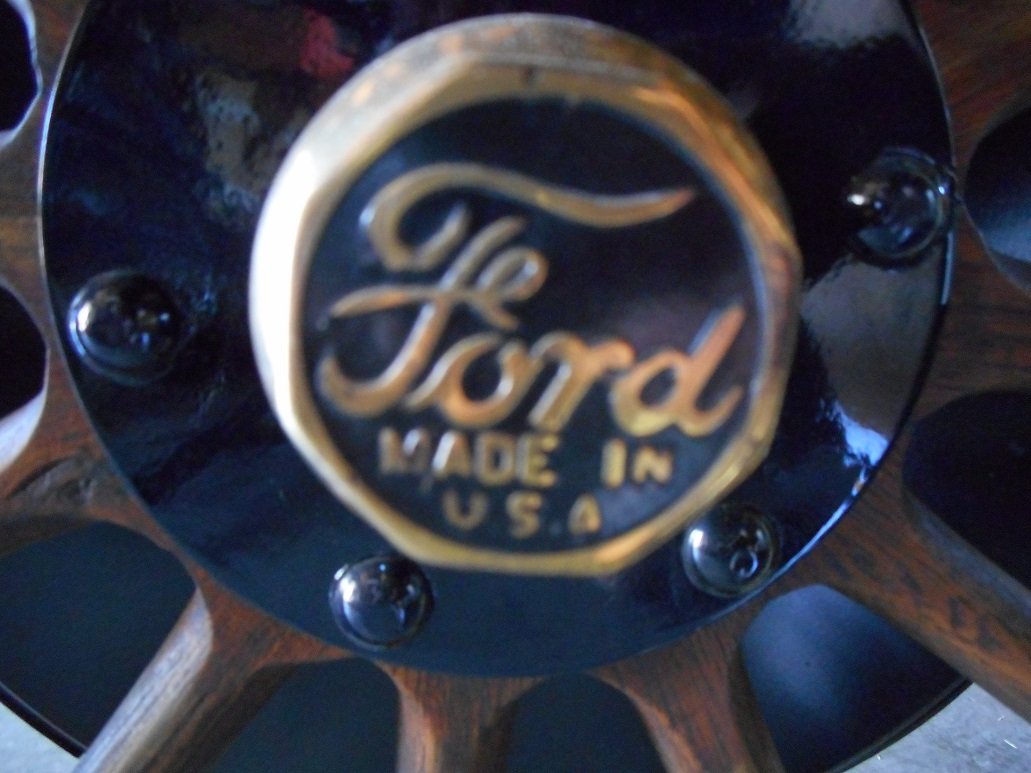 I've had several of those. I don't like them, so they just sit on the back shelf. Here are some examples of 1913 hub caps I have. If you are wondering about the natural wheels, wonder no more! The car has been restored.