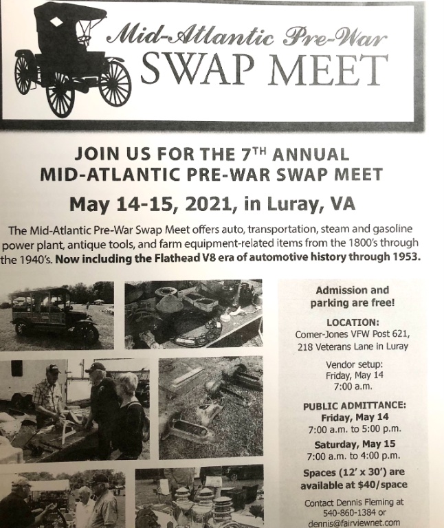 I just got off the phone with Dennis and he said it’s full steam ahead with the Luray, VA swap meet for 2021. I’ve never been before but seeing as how Marietta got cancelled, we may have to drive over and check it out. He promised we would not be disappointed. And reviewing the previous photos, I’d say he’s right!!!