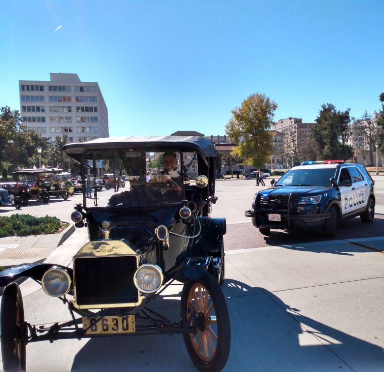 As usual, Original Smith was at the HCCSC annual New Year's Day Holiday Excursion in Pasadena, California. He had this 1915 Touring arrested for a code 56.75.20, "bastardization of bulb horn placement".
