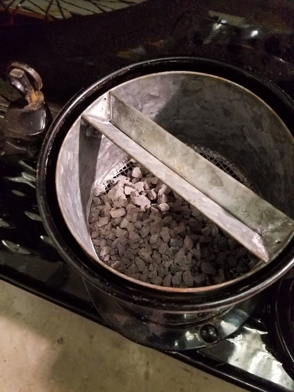 On that type of basket, I was told to put the carbide in the V shaped trough, not in the bottom of the basket. I guess it will work either way.