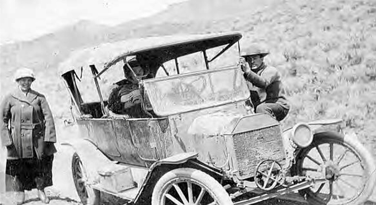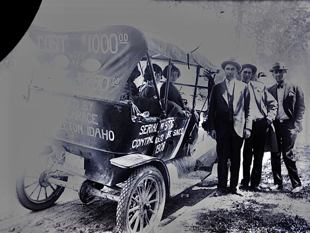 The 5th one down boasts "Serial no. 9776 Continuous use since 1908 .... by ... Garage Middleton Idaho". The body and top look like replacements. The "$290" price would make the photo seem to be taken in 1925. Interesting promotion.