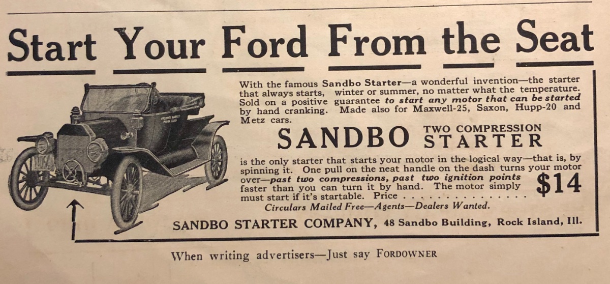 The #4 car with the starter also appears to have fork mounted electric headlights. Late 14 or aftermarket conversion?