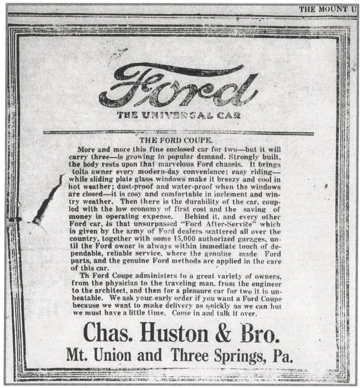 Re: Local Dealer- Standard Company Advertisement for a 1921 Coupe